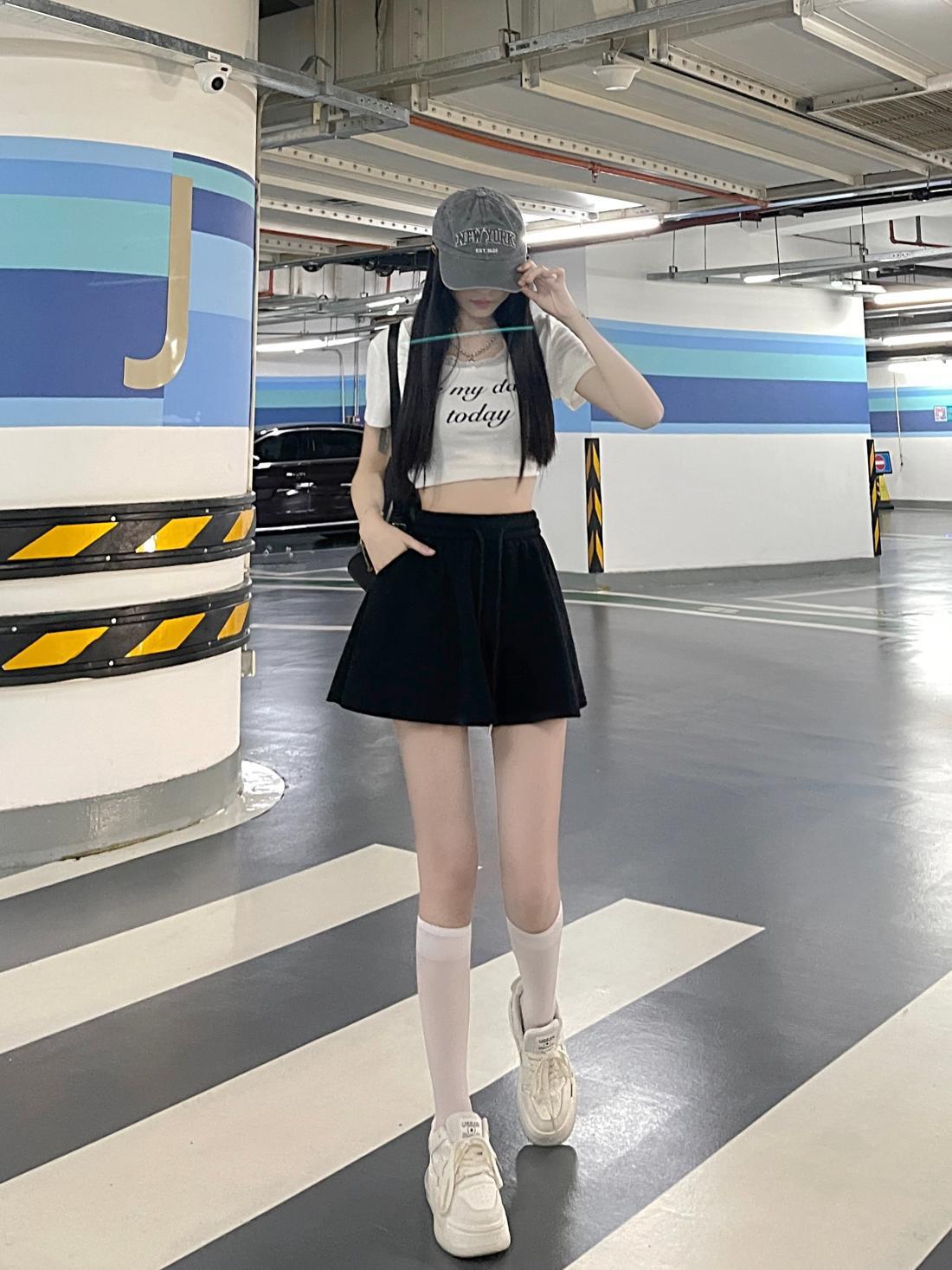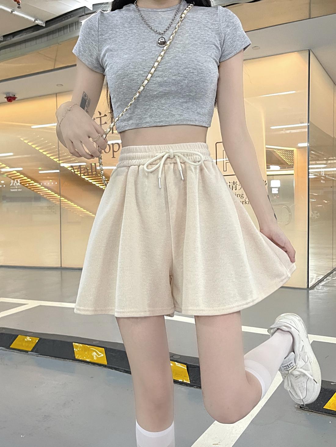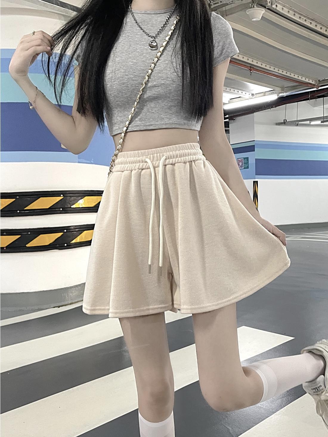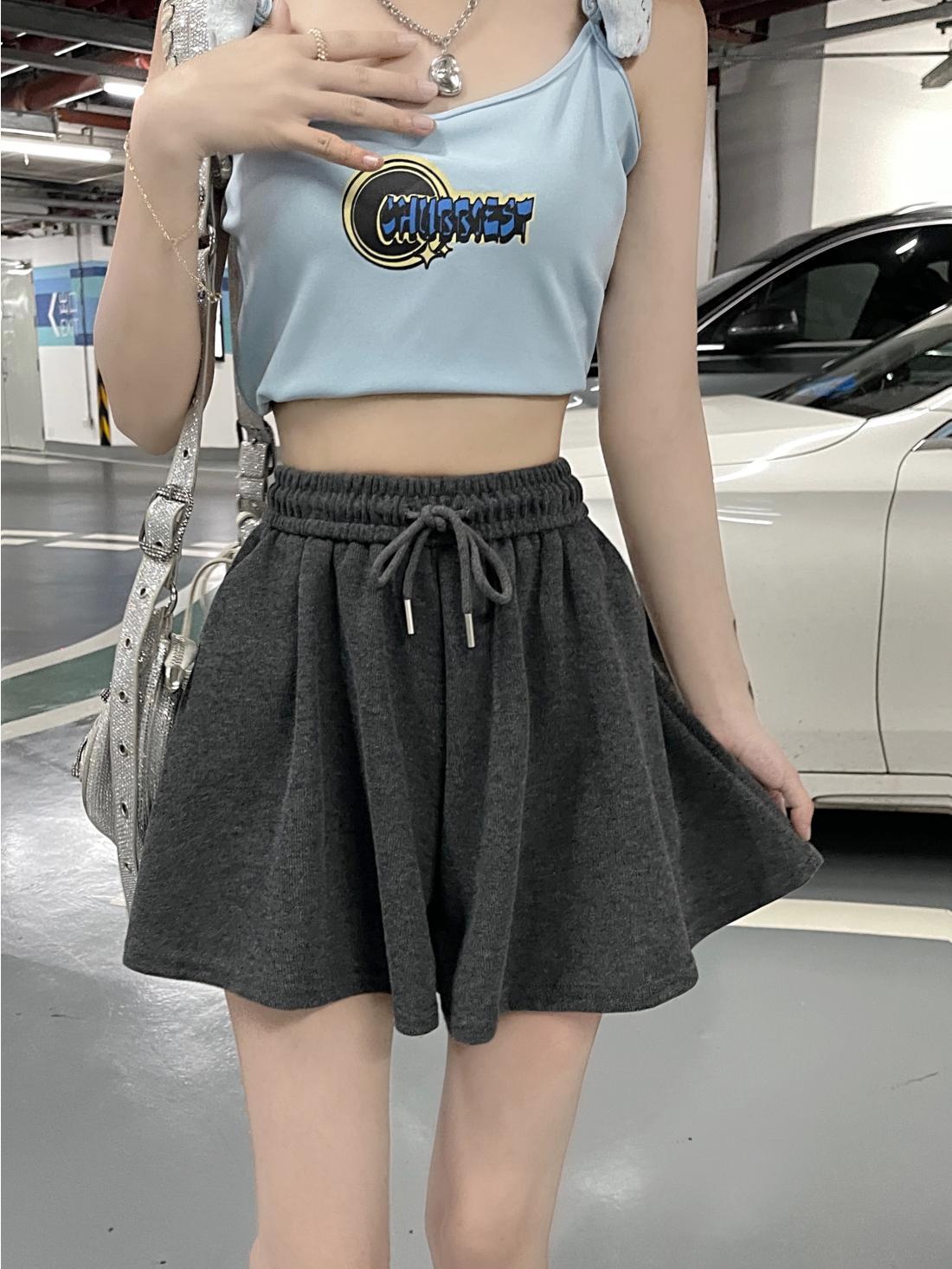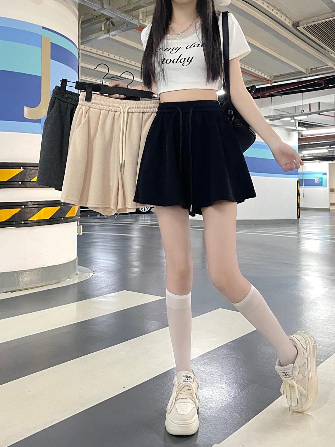 150 Shorty Wear Shorts esportivos pretos com cordão femininos de verão, soltos, casuais, de perna larga, culotes da moda