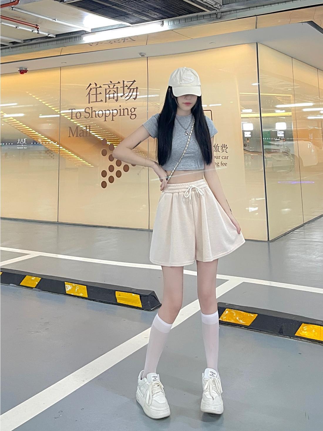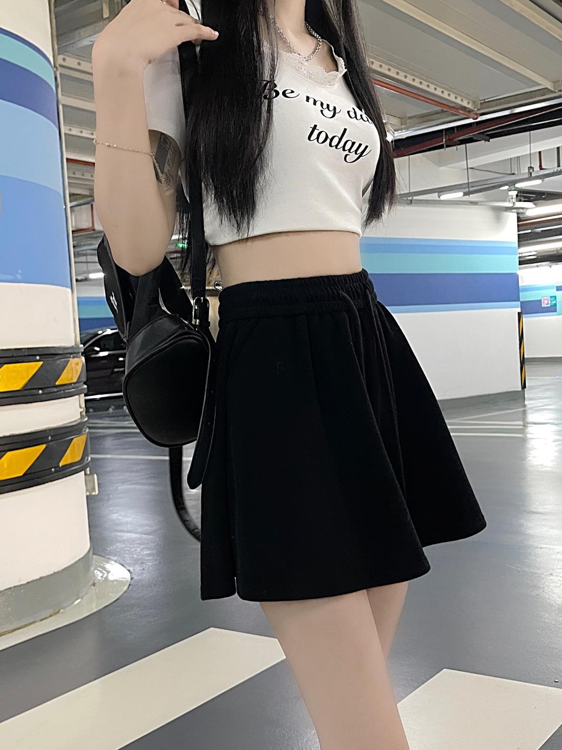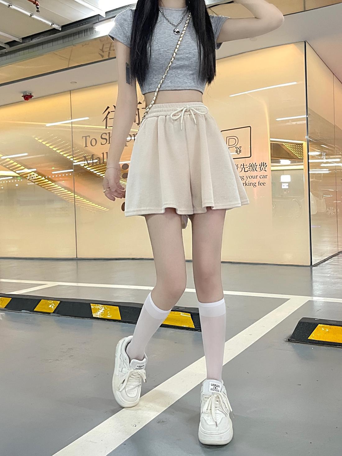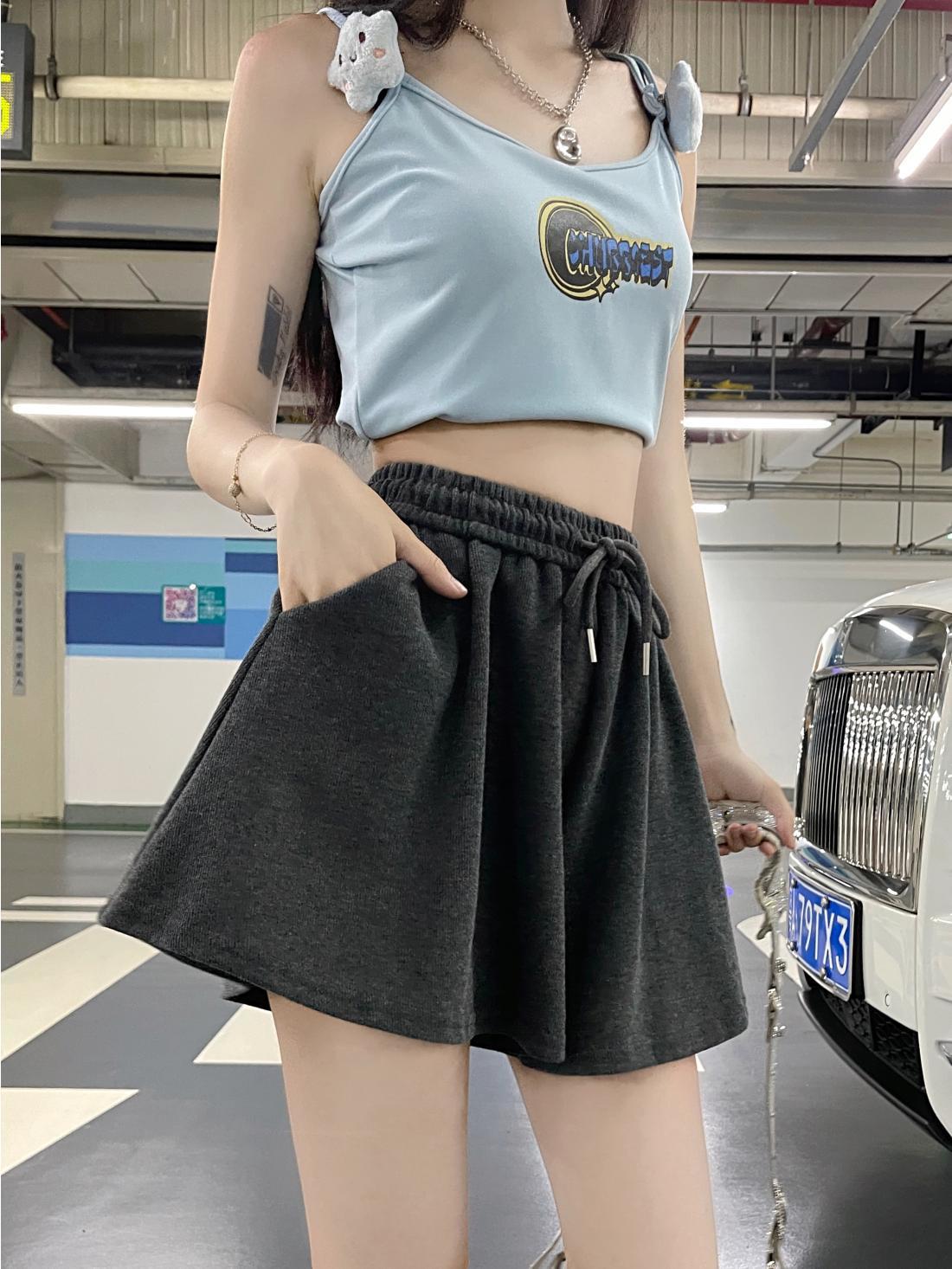 150 Shorty Wear Shorts esportivos pretos com cordão femininos de verão, soltos, casuais, de perna larga, culotes da moda