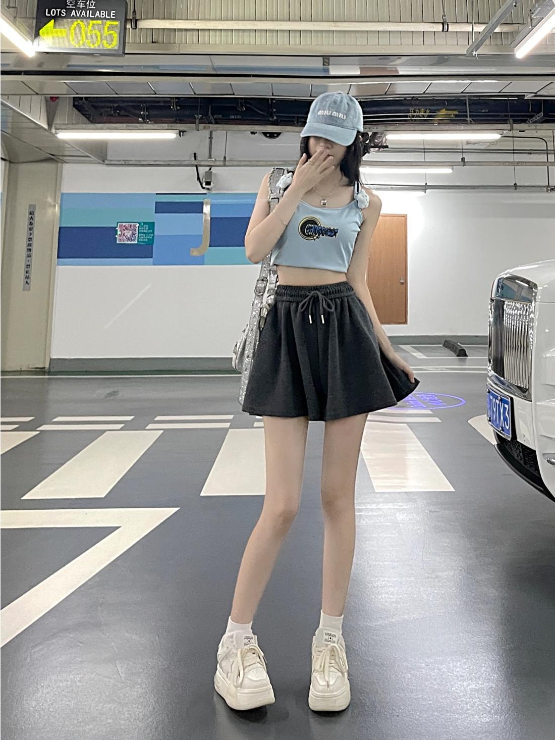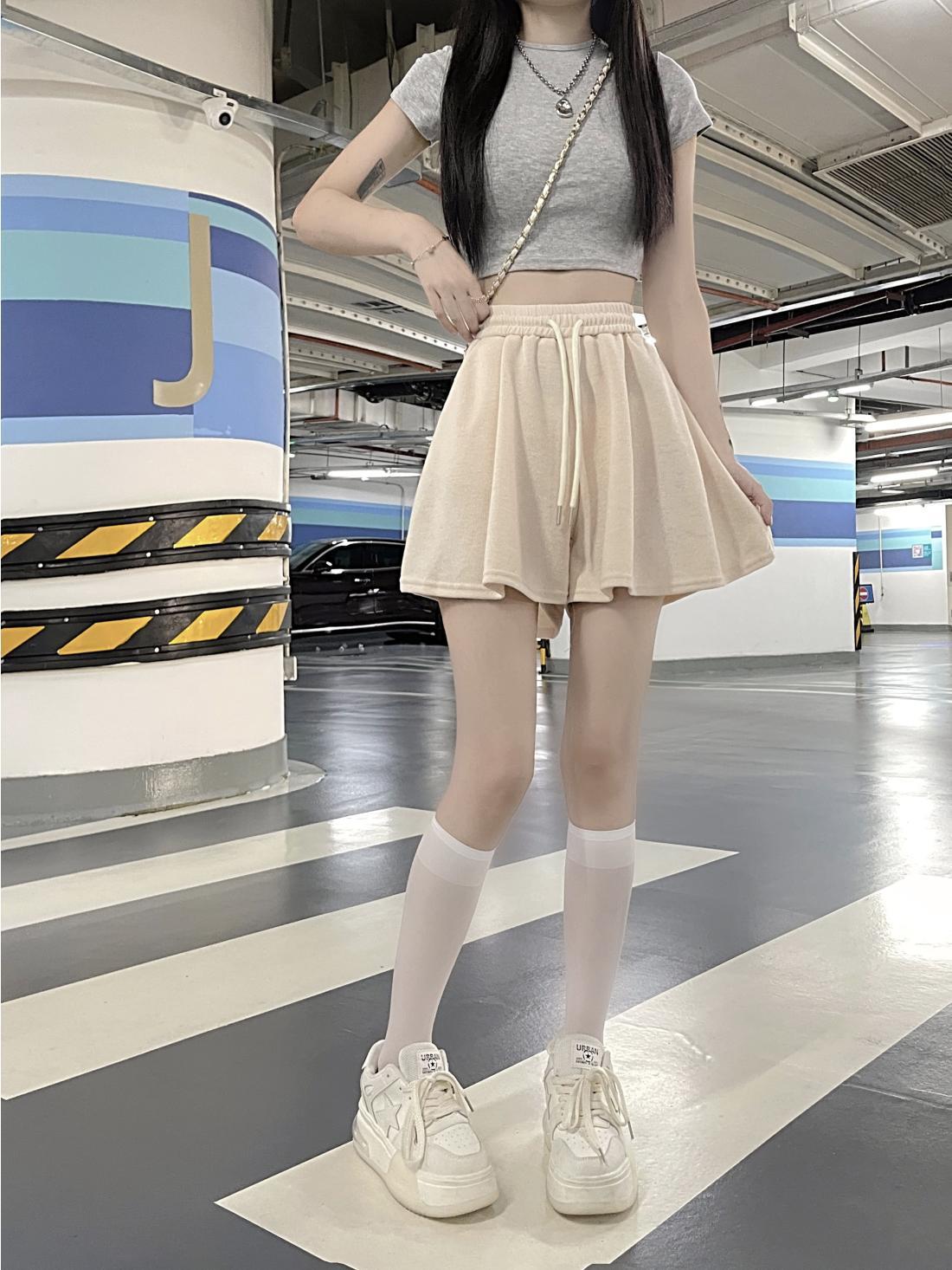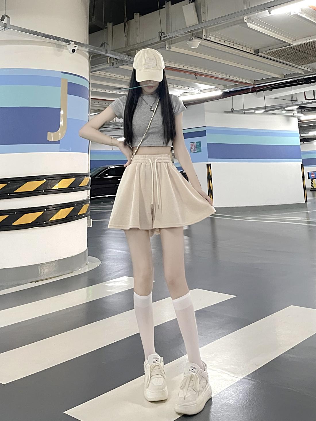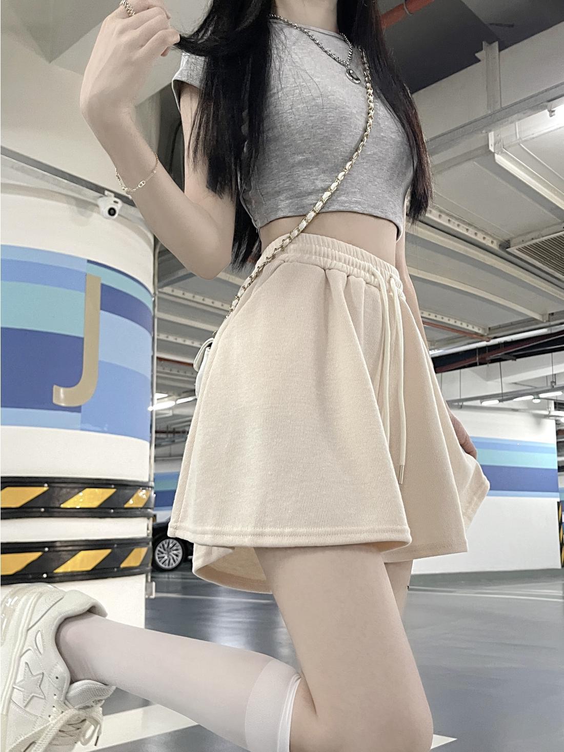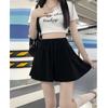 150 Shorty Wear Shorts esportivos pretos com cordão femininos de verão, soltos, casuais, de perna larga, culotes da moda