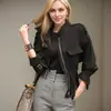 Jaqueta Elegante Transfronteiriça 2025 Estilo Coreano Slim-fit Vista Longa Zíper Cordão Ombro Caído Jaqueta Curta Feminina