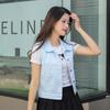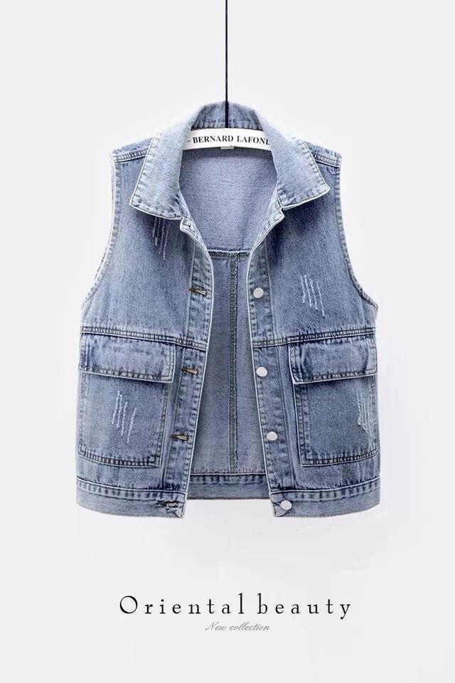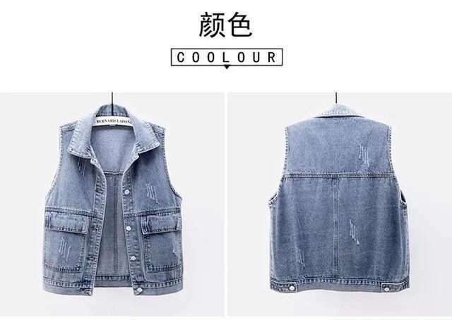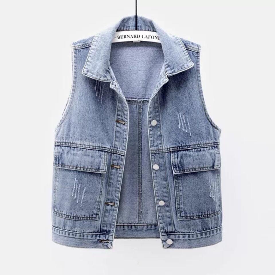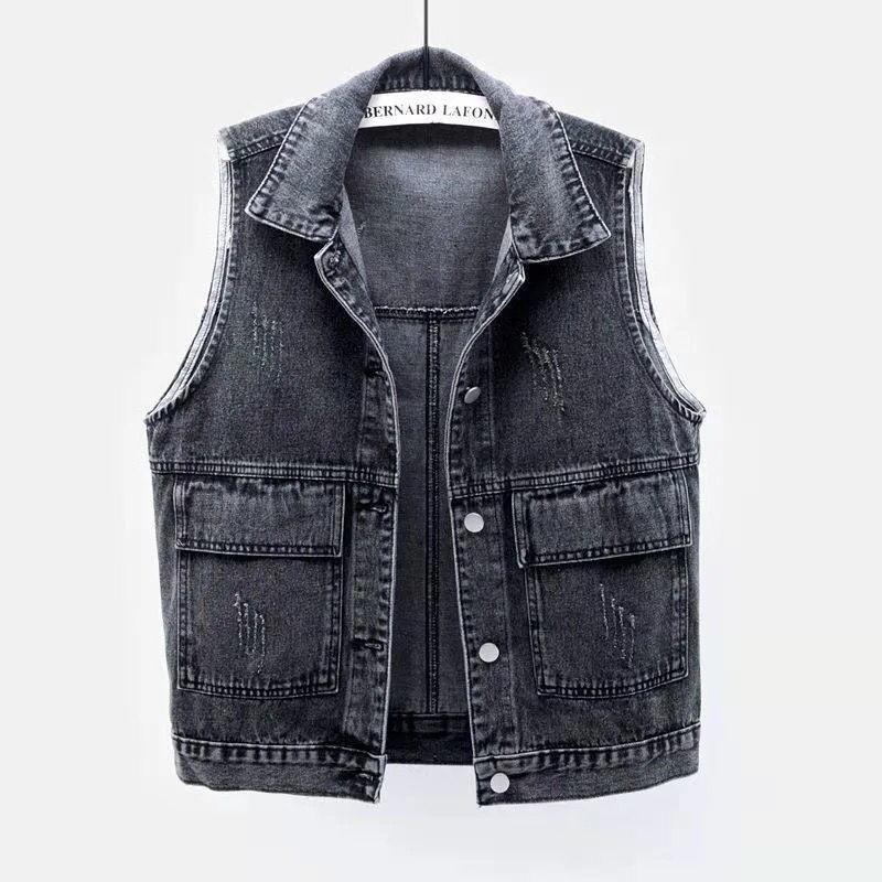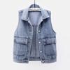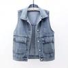 Colete jeans feminino curto primavera verão outono inverno novo simples bolso grande sem mangas colete all-match solto top cardigan
