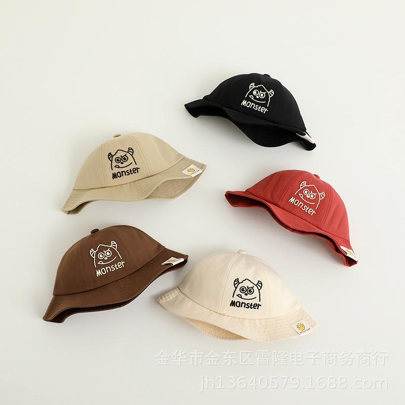 Chapéu de pescador infantil bordado personalizado estilo coreano, aba grande, novo chapéu de proteção solar para bebês, primavera, masculino e feminino