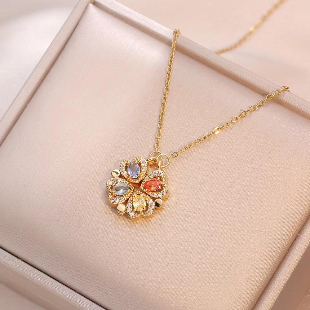 Colar para as mulheres nova flor colorida de quatro folhas uma corrente de clavícula de moda pingente de amor de duas peças em estoque colar por atacado para mulheres