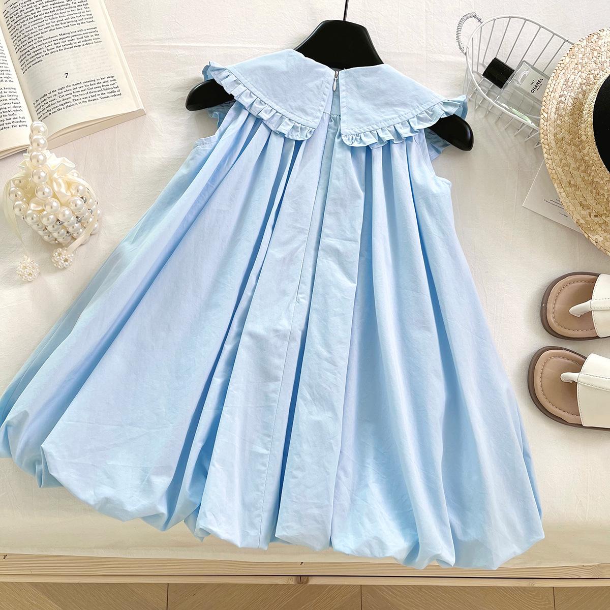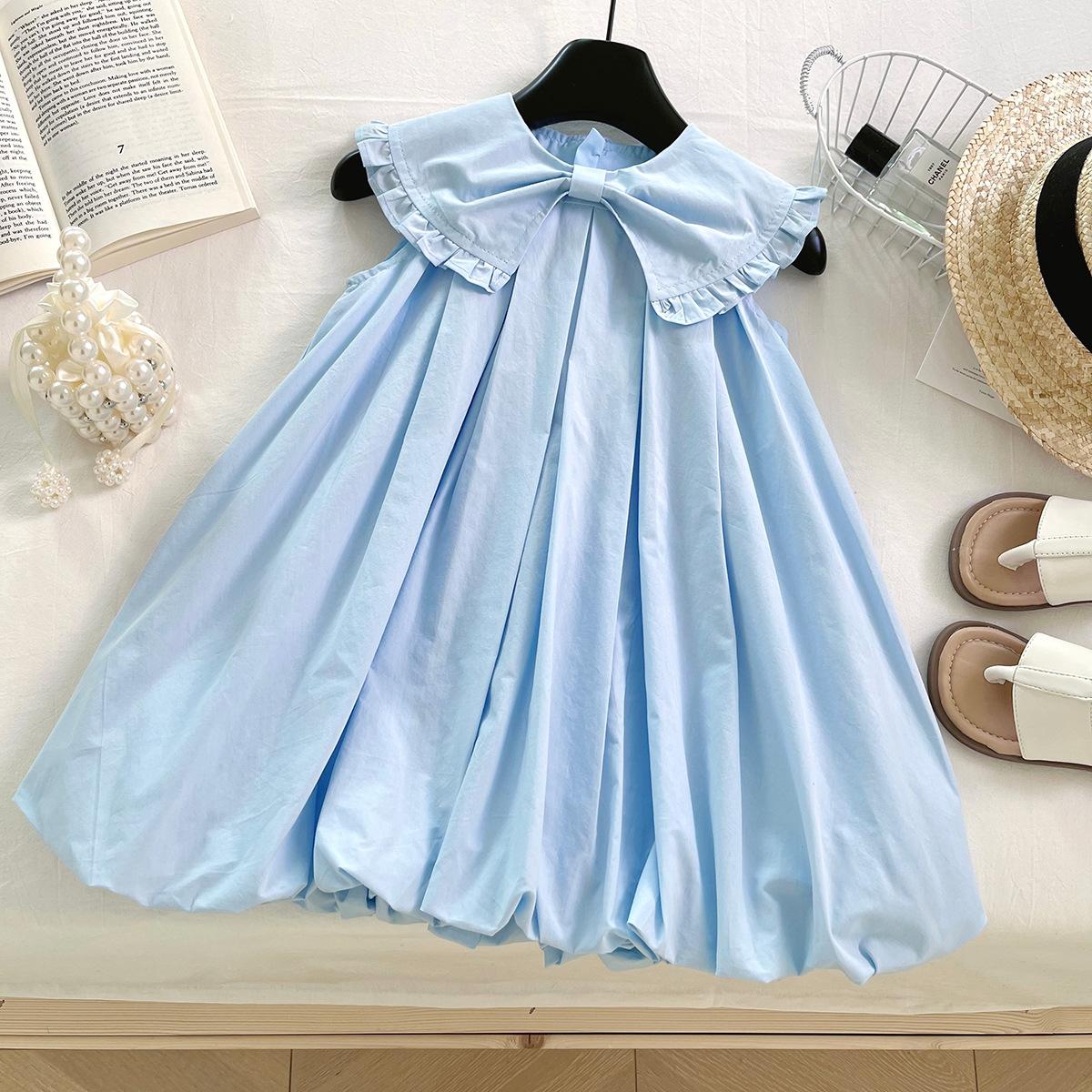2025 verão novo vestido coreano sem mangas com laço para meninas bebê verão fofo estilo estrangeiro saia infantil 17230