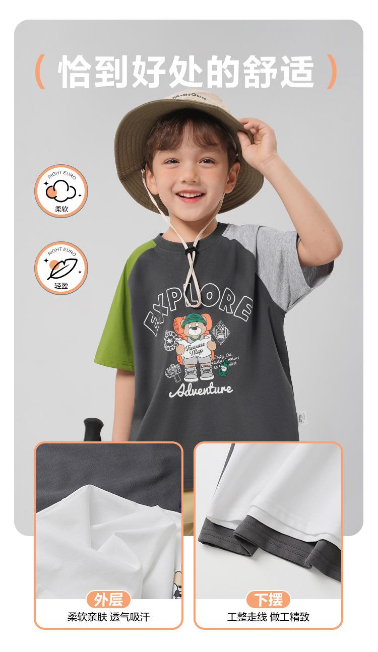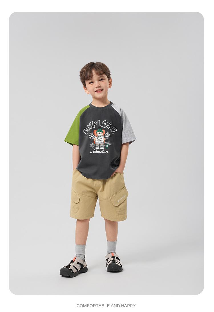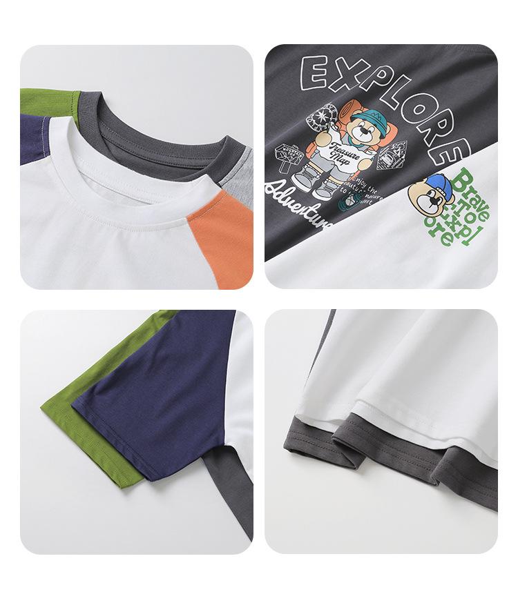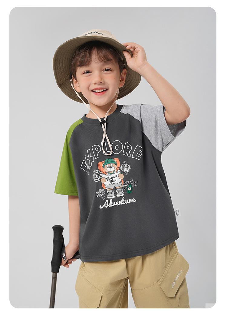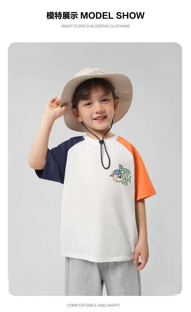 Camiseta Raglan de manga curta para meninos, verão 2025, novo estilo, blusa infantil grande estilo ocidental, moda infantil de verão
