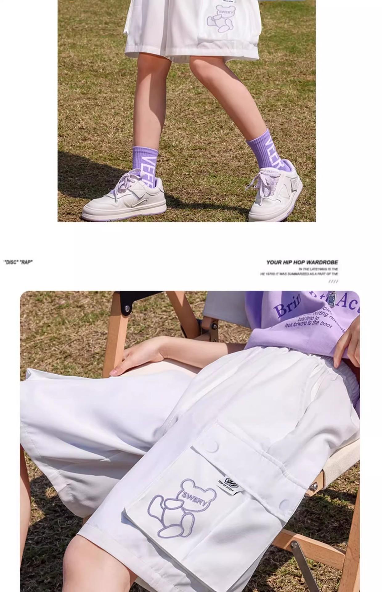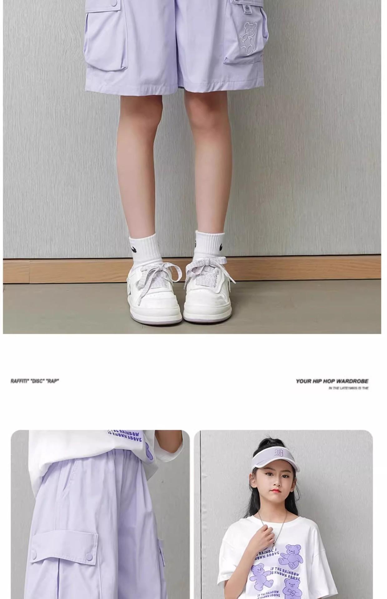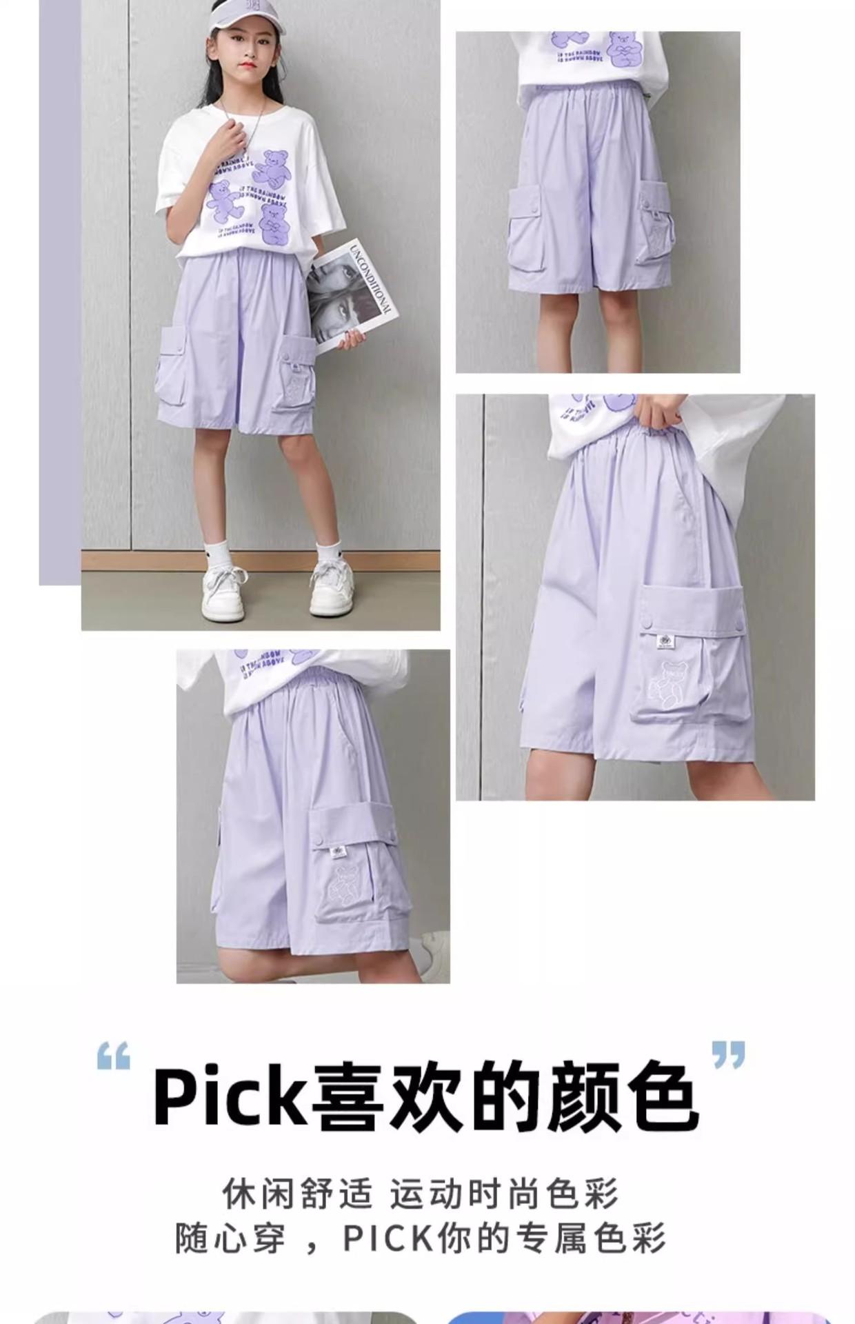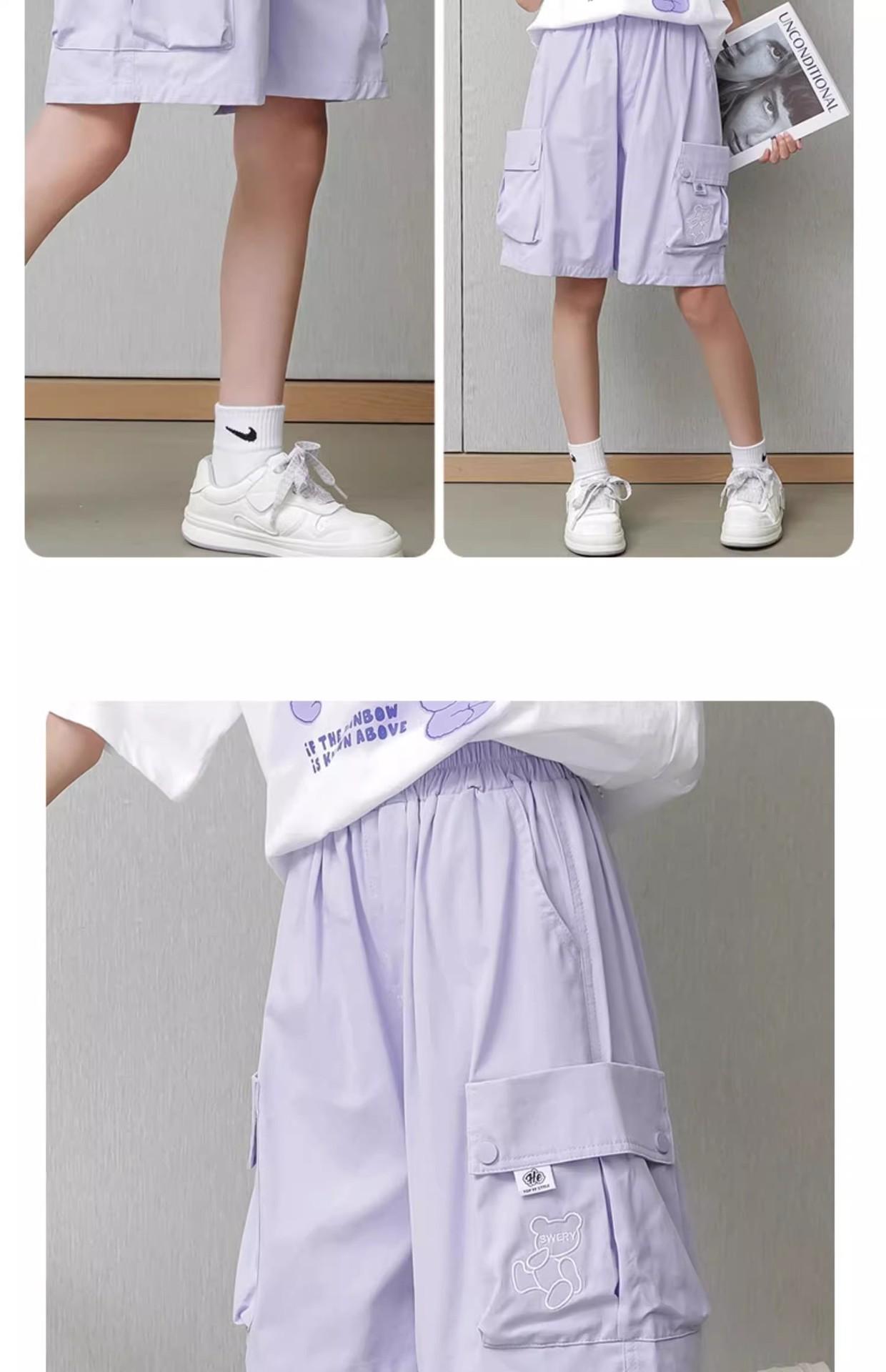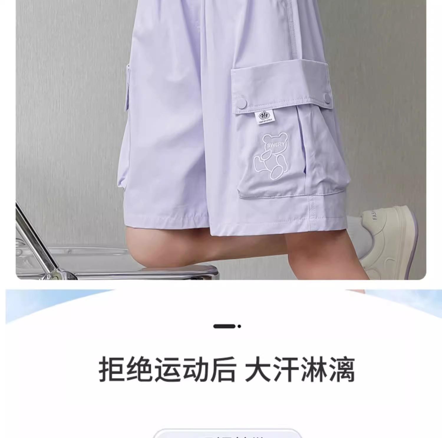 Shorts de trabalho para meninas, verão, seda gelada, roupa externa infantil, 2025, novo, esportivo, cinco pontas, calças médias, calças de verão infantis grandes