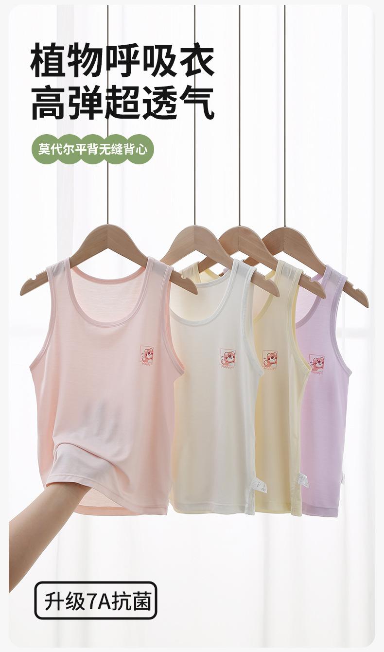 Colete modal para meninas, colete interno infantil antibacteriano 7A de seda fina e gelada, médio e grande, infantil, classe A, desenho animado, top único