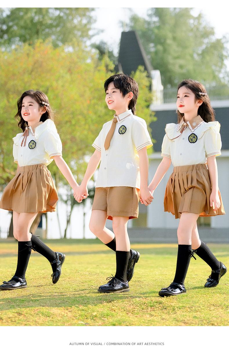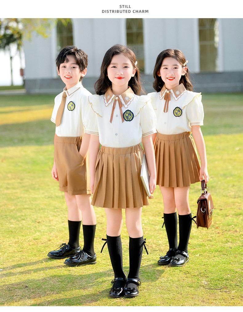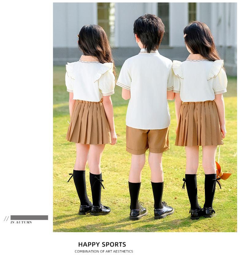 Uniformes de Verão para o Ensino Fundamental, Ternos de Manga Curta para Fotos de Formatura, Uniformes Escolares de Verão para Crianças do Primeiro Ano do Jardim de Infância