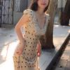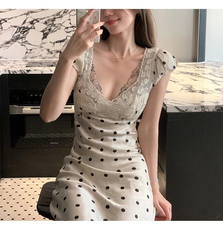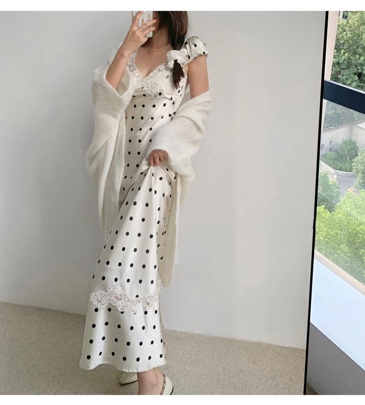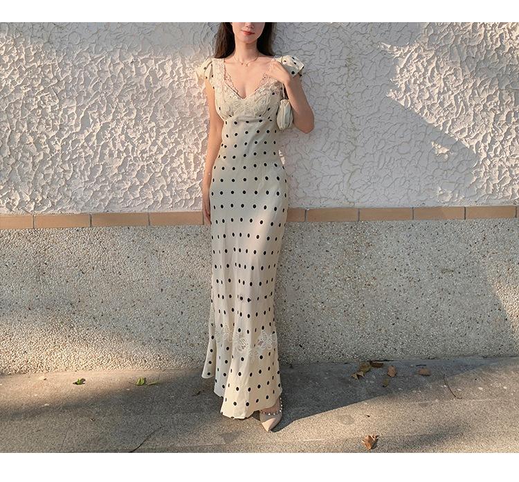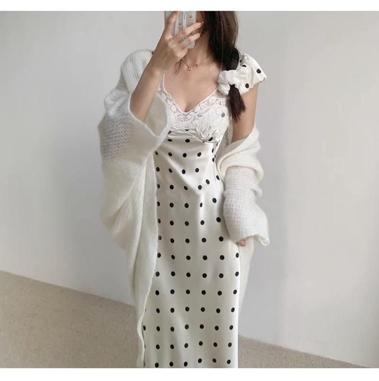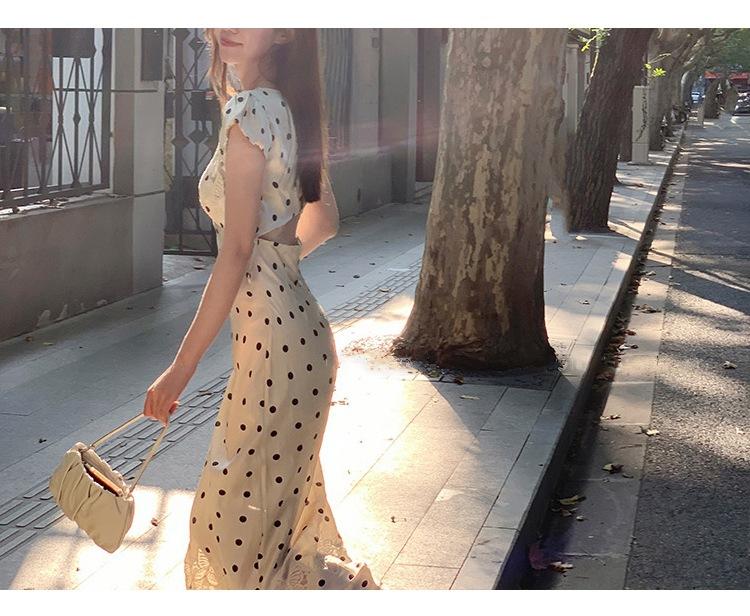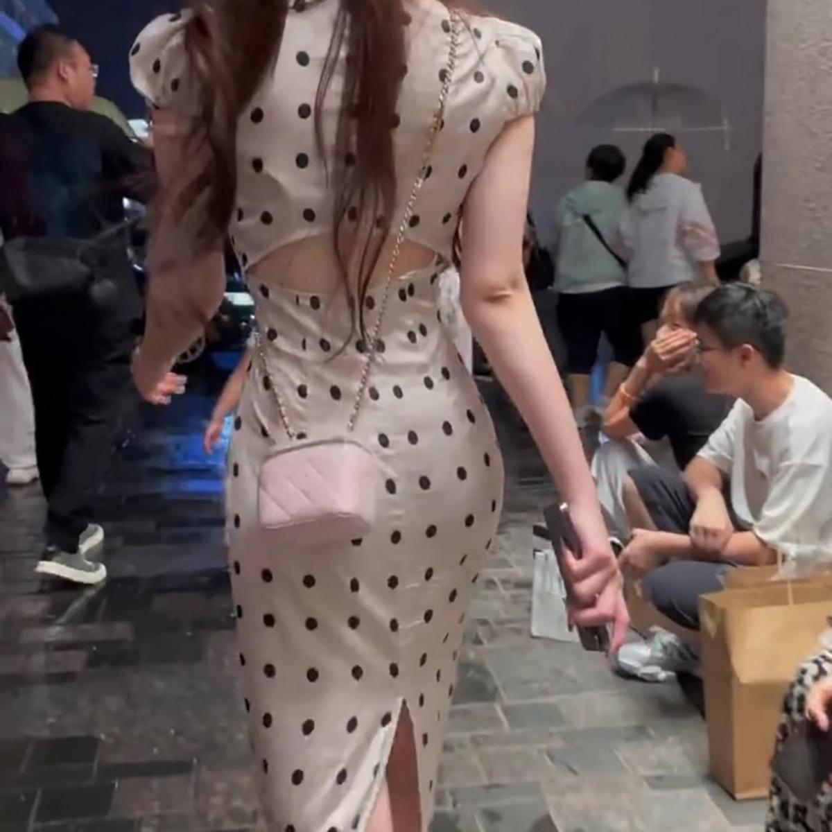 Pronta Entrega Vestido de Aniversário Estilo Igual de Yu Shuxin Vestido de Bolinhas de Cetim Francês Conjunto de Duas Peças Colete
