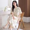 Camisola feminina de verão, algodão puro, cinto, almofada no peito, pijama feminino floral sexy de verão 2025, saia feminina