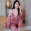 Pijama feminina vermelha sexy de comércio exterior europeu e americano, roupa de casa de primavera e verão, moda, renda costurada, conjunto de alças, atacado