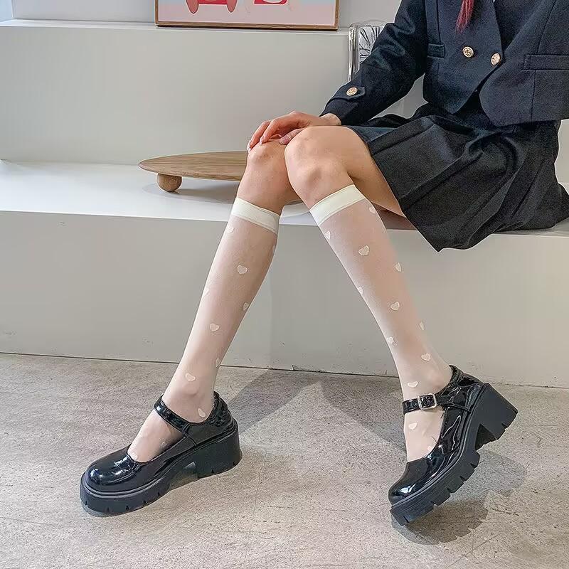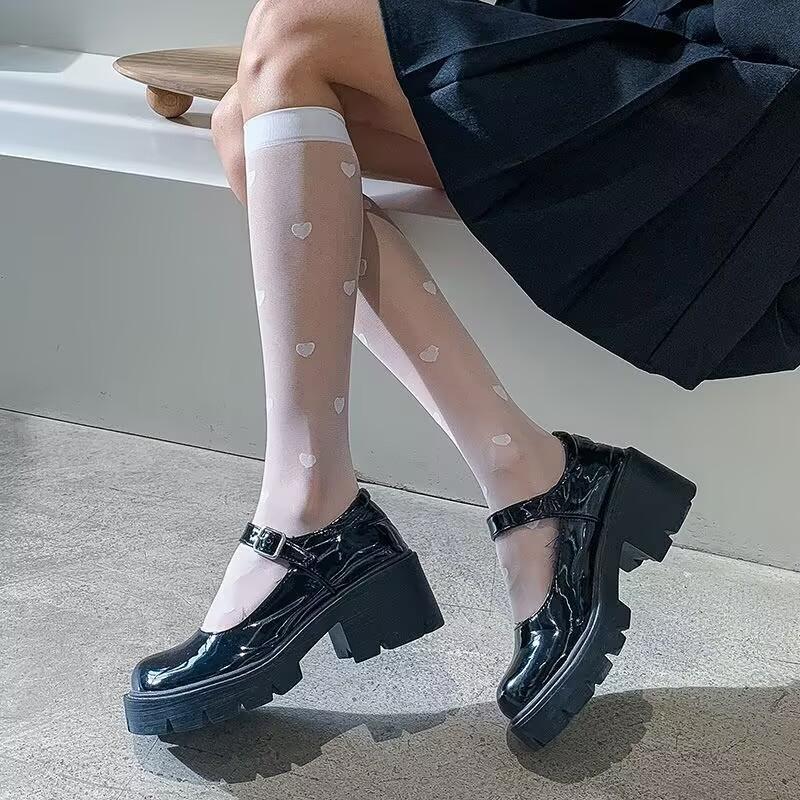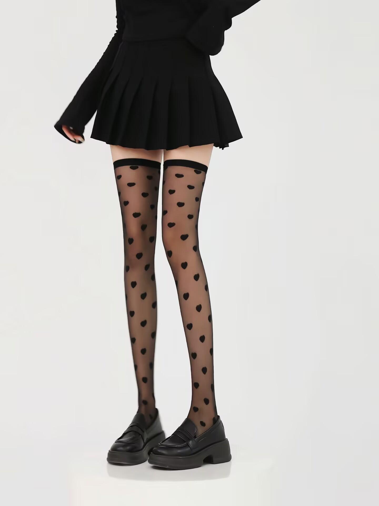 Black love heart over knee, White love heart over knee, Black love calf, White love calf
