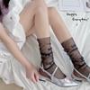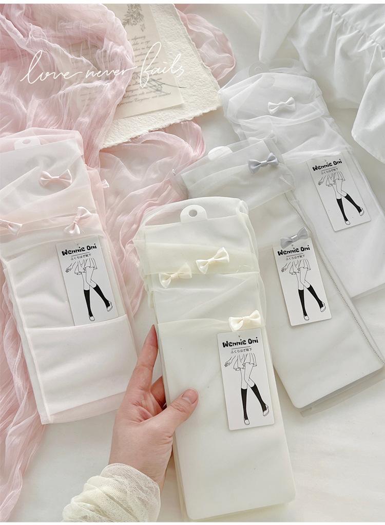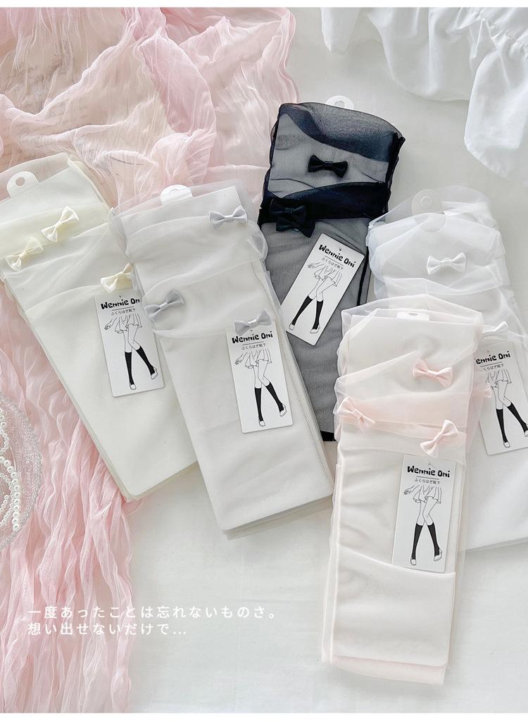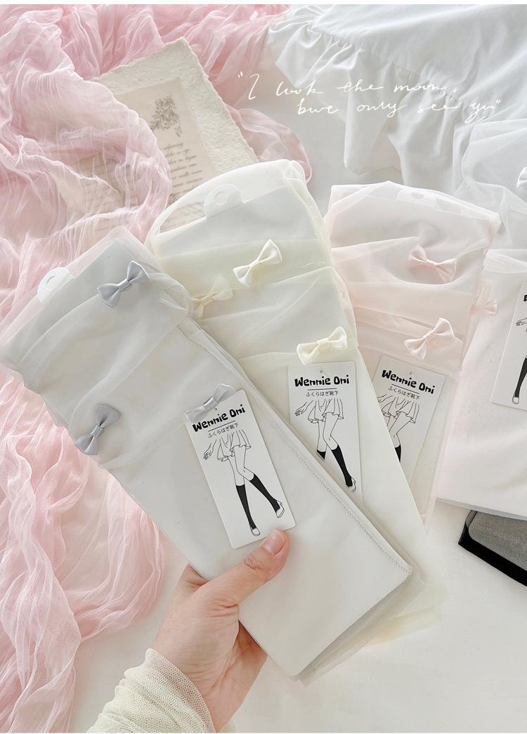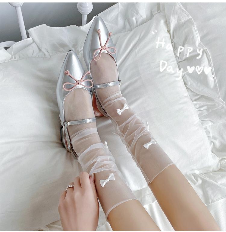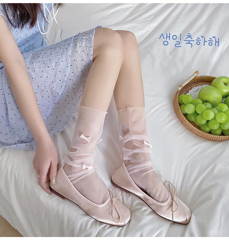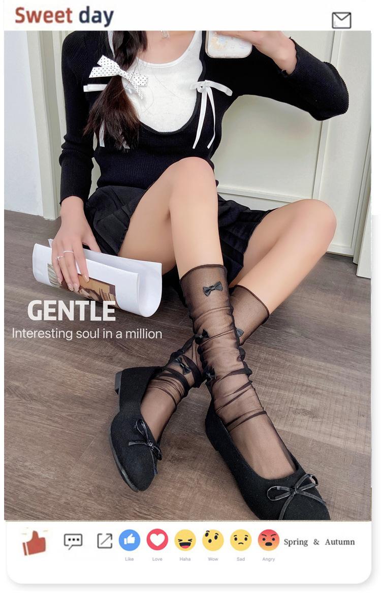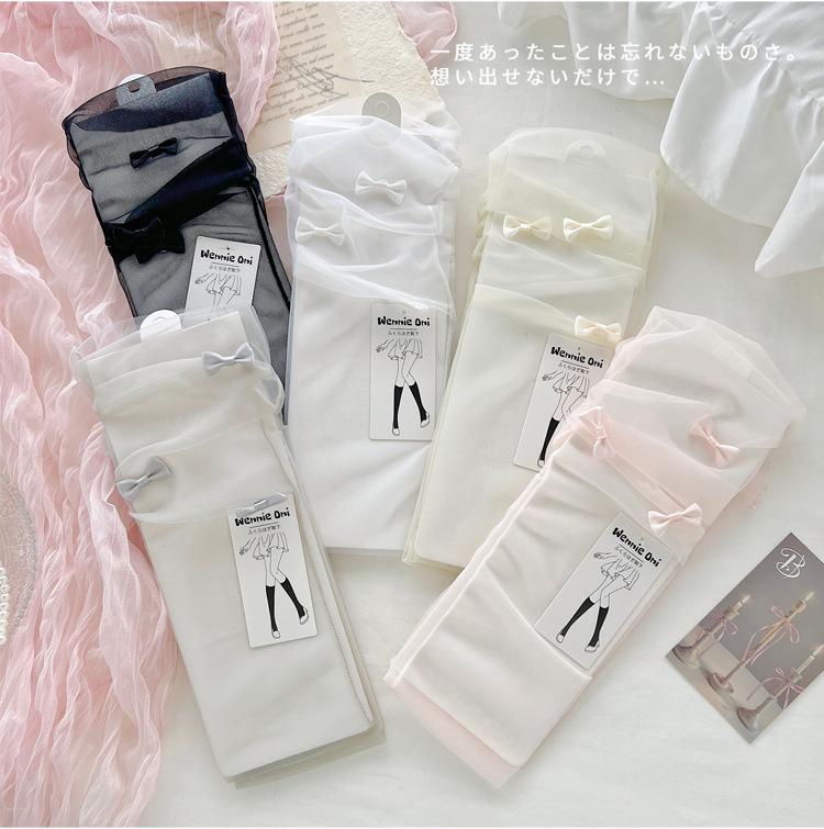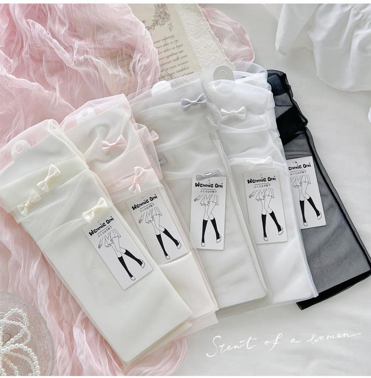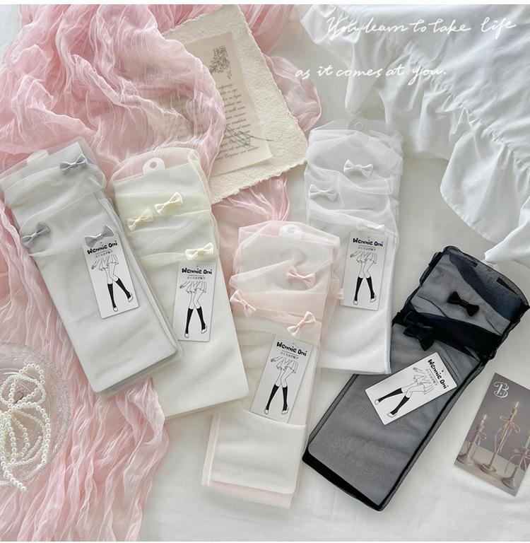 Primavera e Verão Meias Transparentes Ultrafinas com Laço de Fita para Menina Meias de Rede Pretas Ins Meias Empilhadas Emagrecedoras