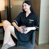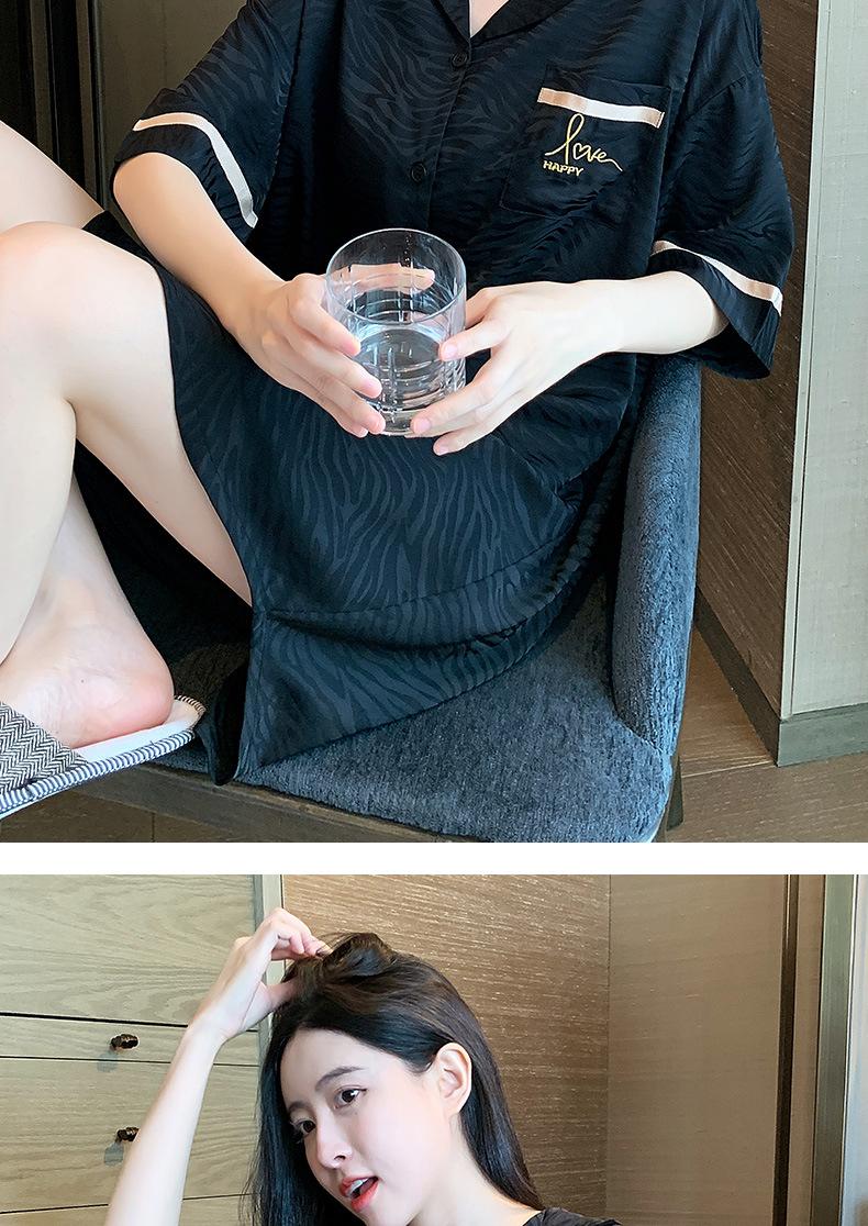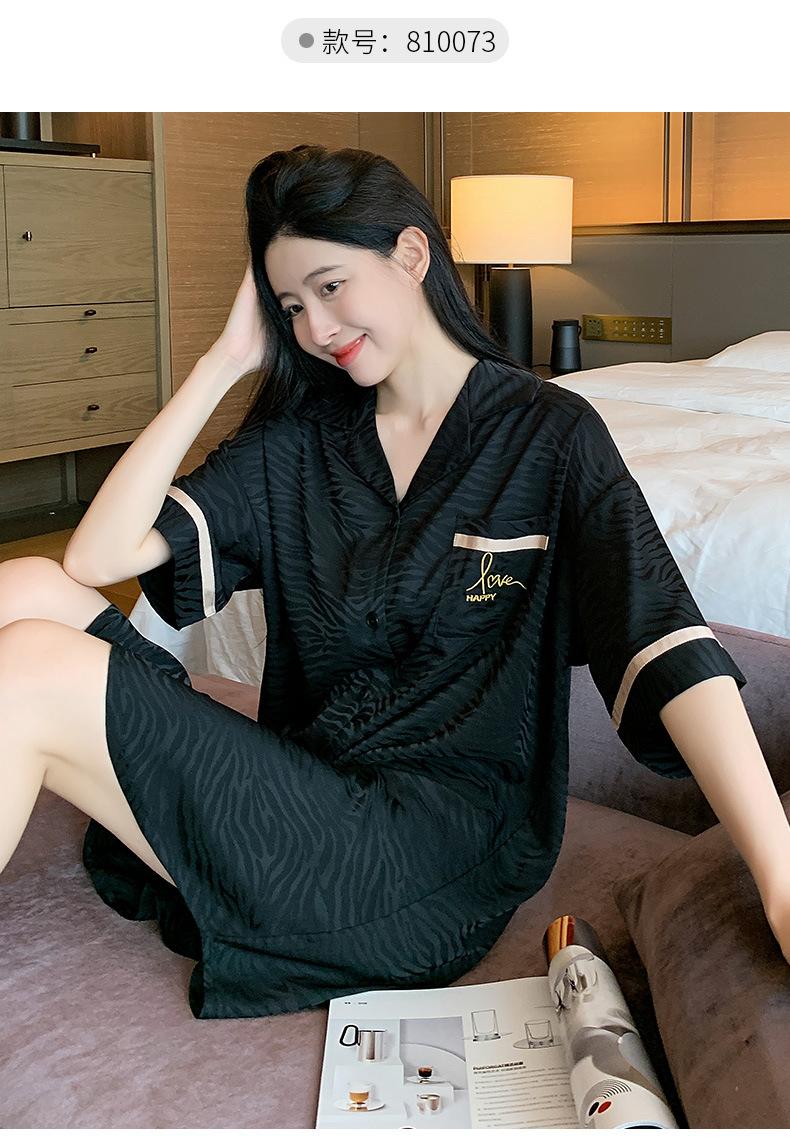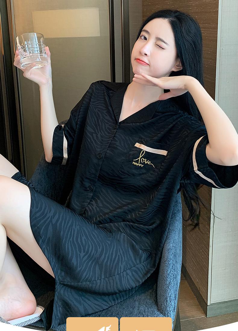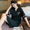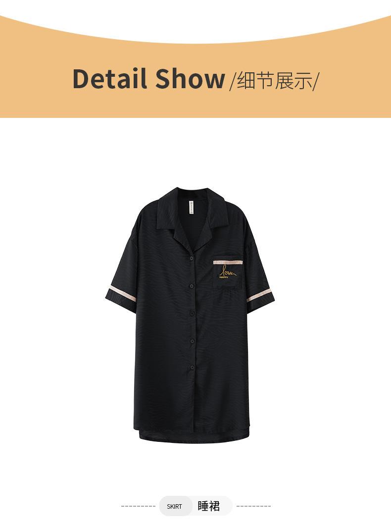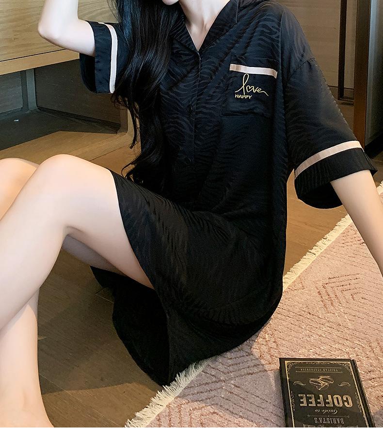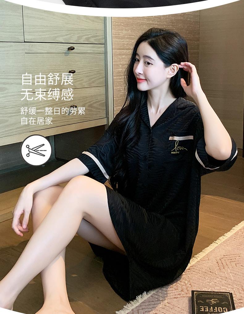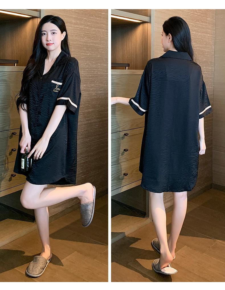2025 Novo Camisão Feminino Primavera e Verão Seda Gelo Fino Sexy Desejo Puro Estilo Namorado Vestido Camisa Preto Pijama de Seda