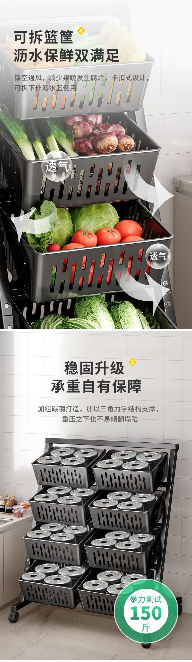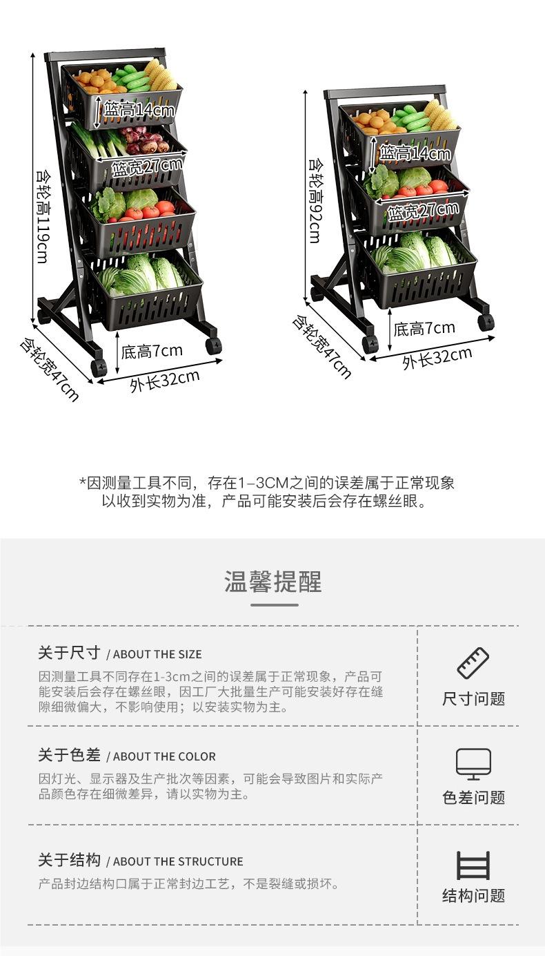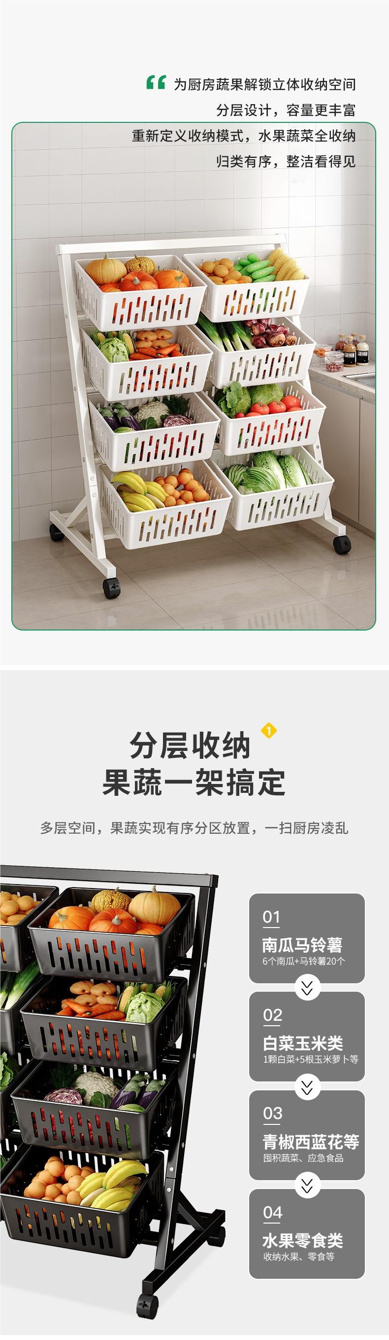 Rack de armazenamento de cesta de vegetais de cozinha Piso Multicamadas Carrinho pequeno doméstico Cesta de armazenamento de lanches Prateleira de frutas e vegetais Rack de armazenamento