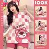 Pijama feminino de manga curta com estampa de coelho fofo estilo coreano, verão 2025, novo estilo casual, shorts xadrez, roupas para casa