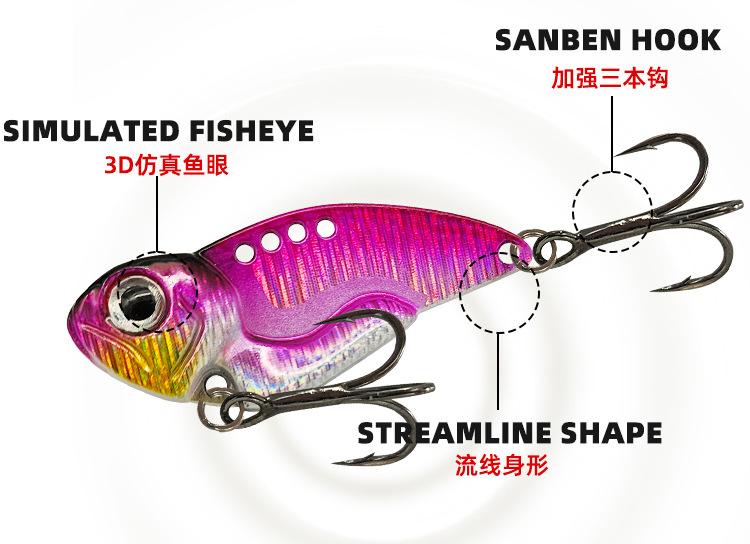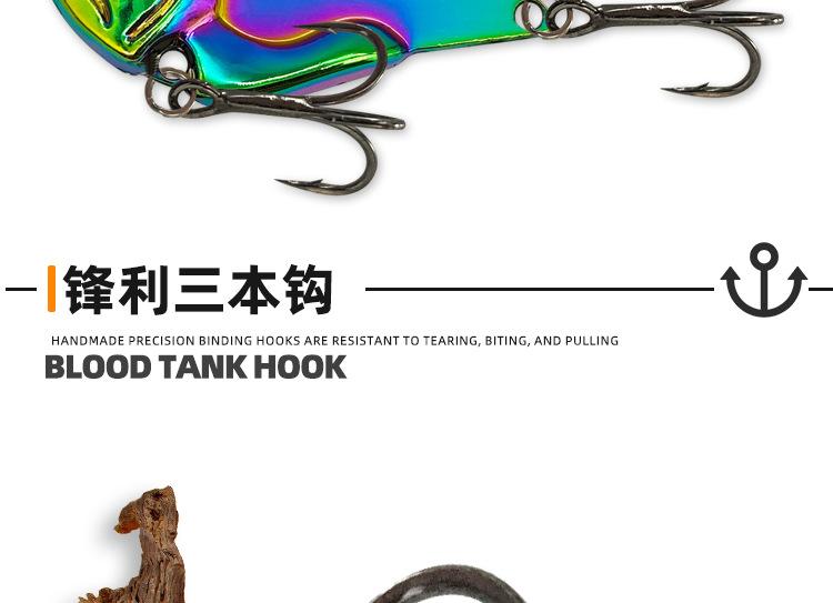 Isca de liga de zinco Doudou VIB, anzol para tanque de sangue, três anzóis ousados, 5g-14g, boca parcial de cavalo, boca armada, água doce do mar