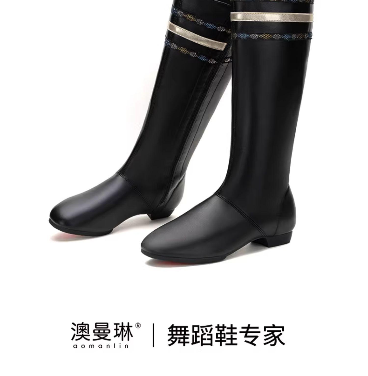 Sapatos de Dança Mongol, Sapatos de Dança Étnica, Botas de Dança, Botas Altas, Botas de Couro com Sola Macia, Botas de Dança para Exame de Arte, Unissex