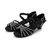 Sapatos de dança latina rosa Amazon atacado PU cetim laço quadrado sapatos de dança femininos salto alto sapatos de dança moderna