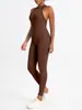 Europeu e Americano Novo Macacão de Yoga com Zíper Peça Única Macacão Esportivo Costas Vazadas Corrida Fitness Calça de Yoga Peça Única