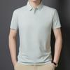 Verão nova cor sólida poliamida sem costura adesiva polo camiseta masculina fina lapela manga curta camiseta masculina uma geração de cabelo