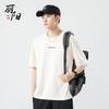 Camiseta masculina de manga curta, estilo americano, com costura de alta qualidade, nova, simples, para o verão, listrada, solta, casual