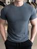 Camiseta Masculina de Manga Curta 2025 Verão Fina Ajustada Esportiva Masculina Justa Listrada Plus Size Casual Gola Redonda Top Camiseta da Moda