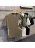 Costura de manga curta camiseta masculina verão nova chegada ferramental estilo gola redonda top moda marca frouxa casual base camiseta meia manga