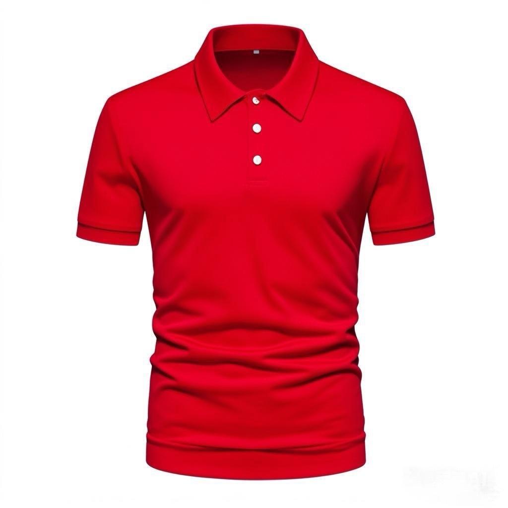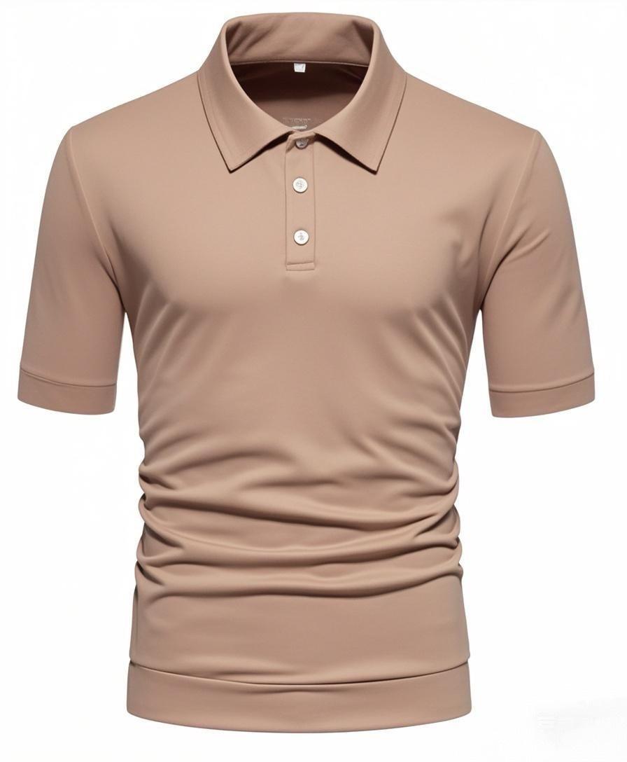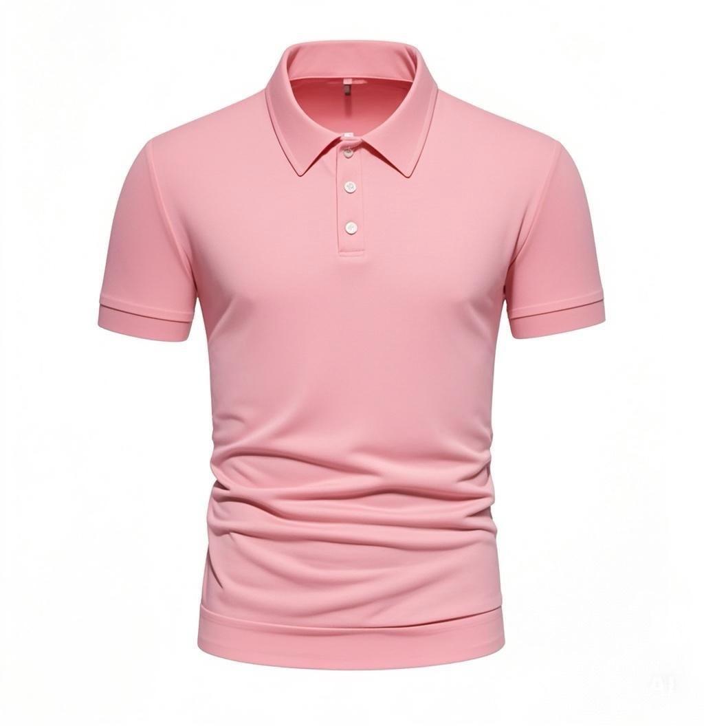 Camiseta Polo Masculina Cor Pura Lapela Piquet Gelo Casual Manga Curta Top Suporta Logotipo Estampado com Fotos