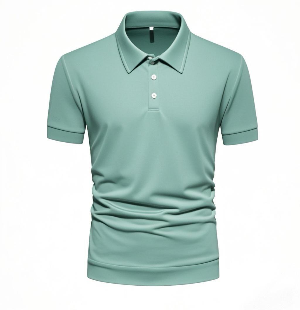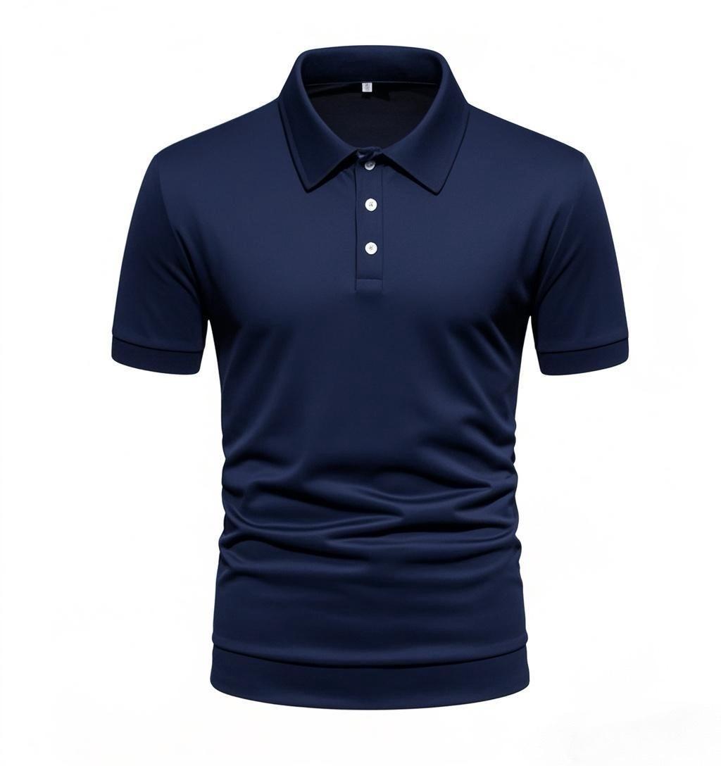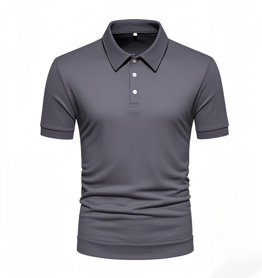 Camiseta Polo Masculina Cor Pura Lapela Piquet Gelo Casual Manga Curta Top Suporta Logotipo Estampado com Fotos