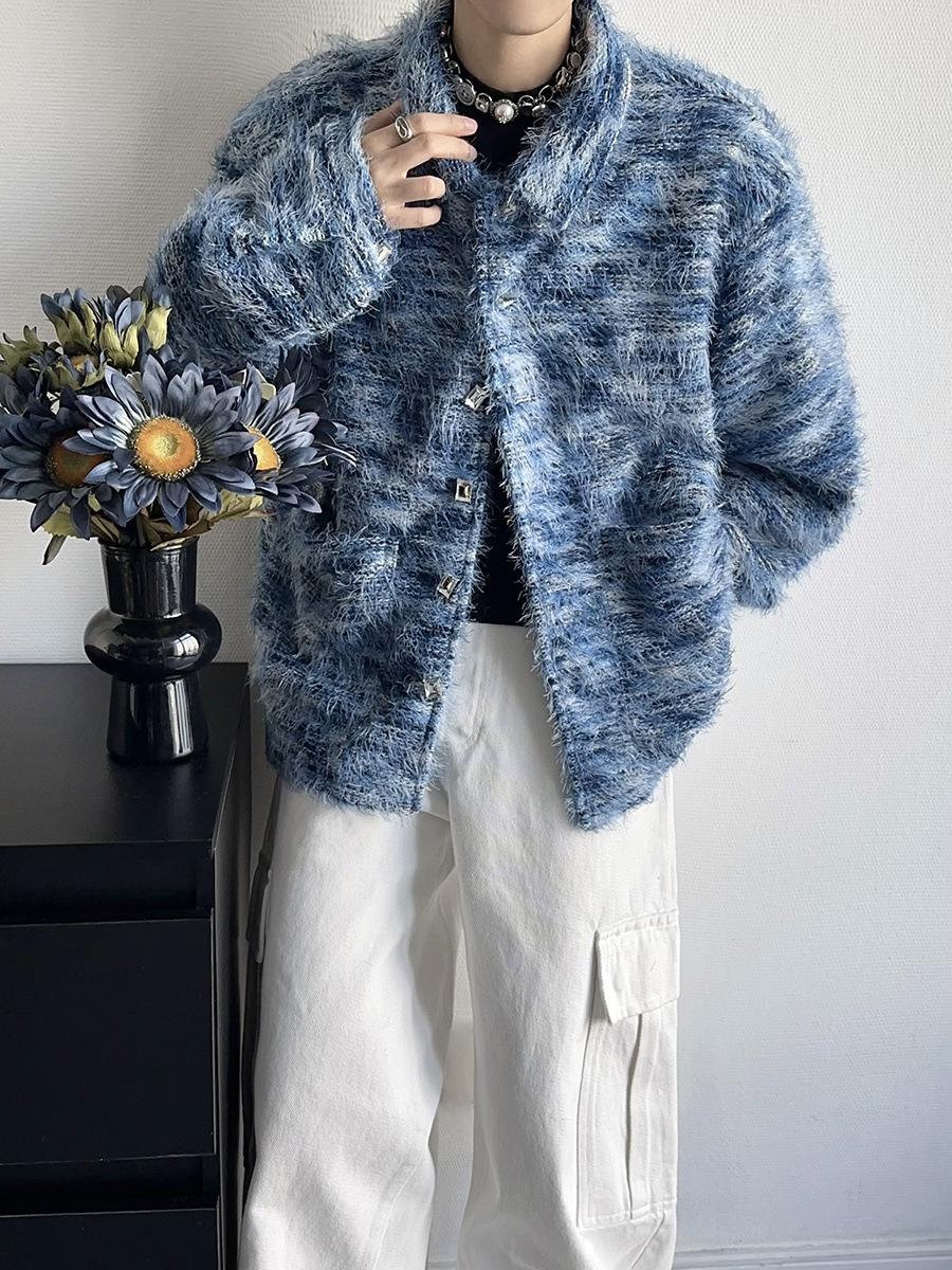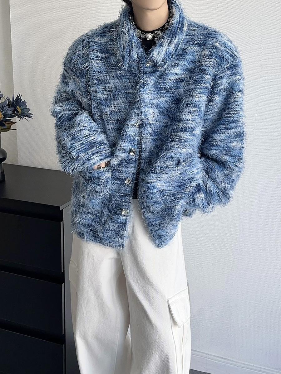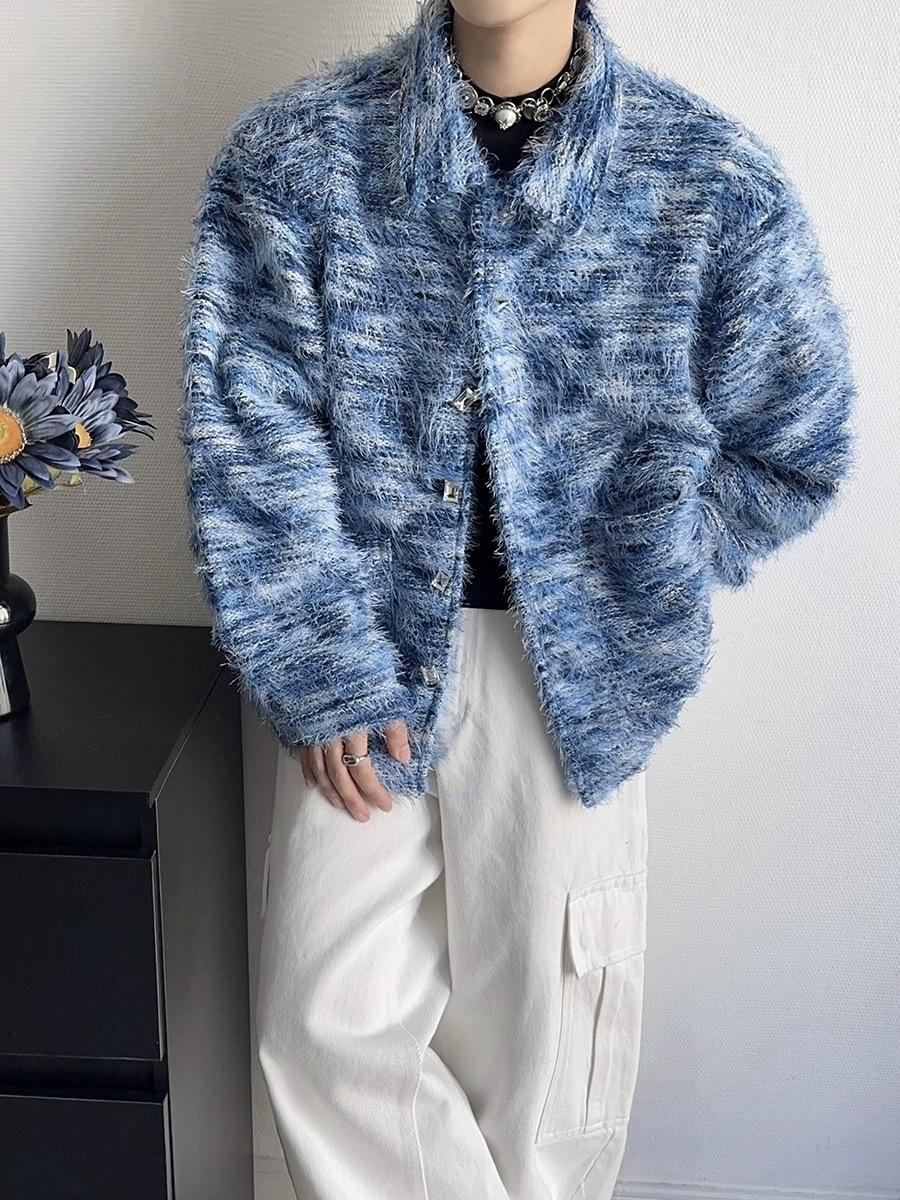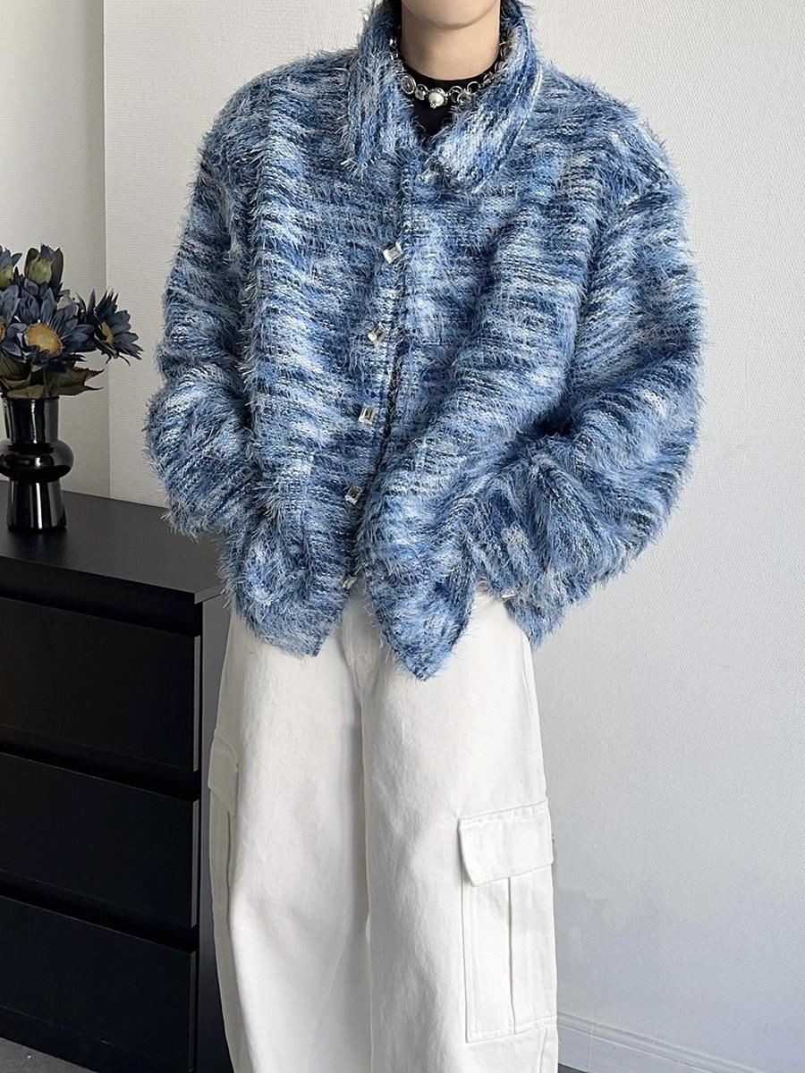 Camisa de imitação de mohair de cores mistas de estilo americano para homens e mulheres, primavera, rufião, bonito, sofisticado, estilo pequeno, fragrância, camisa, casaco