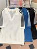 Verão 2025 Polo Tricô Masculina Barra Vazada Street Fashion Solta Gola Larga Top Mesh Manga Curta