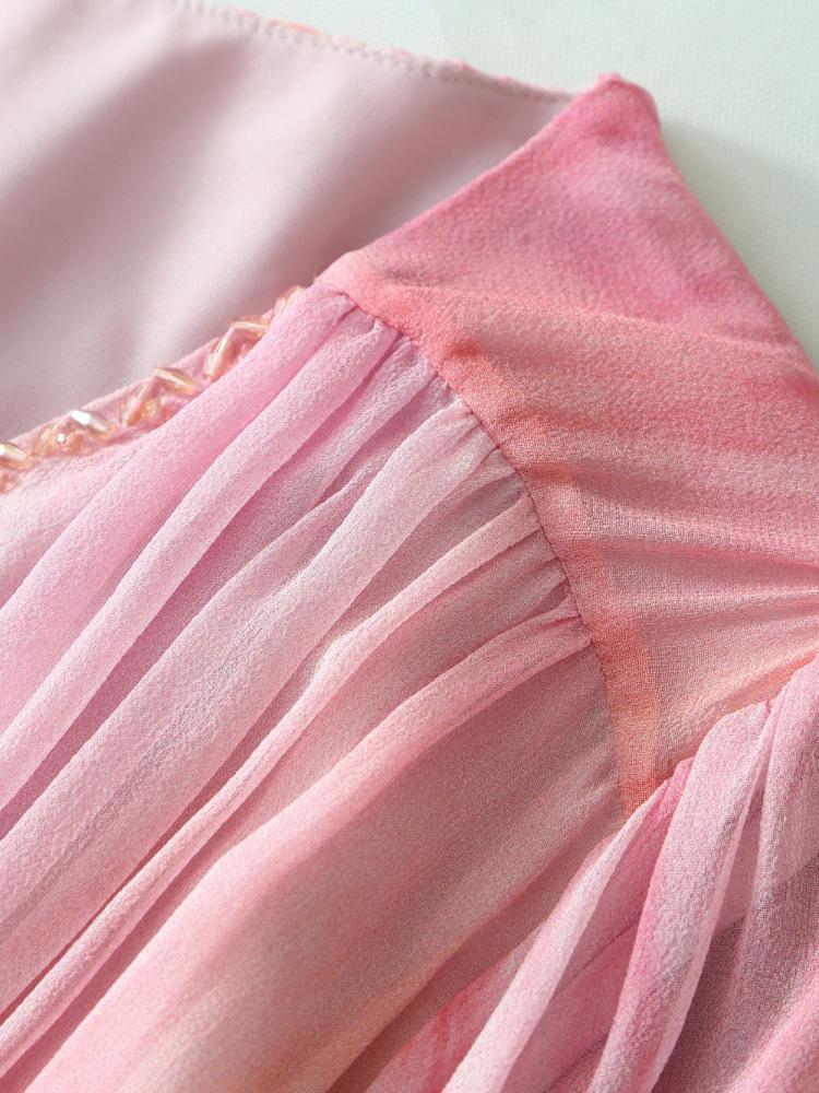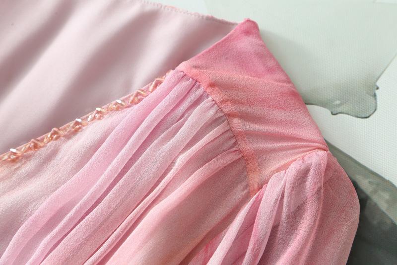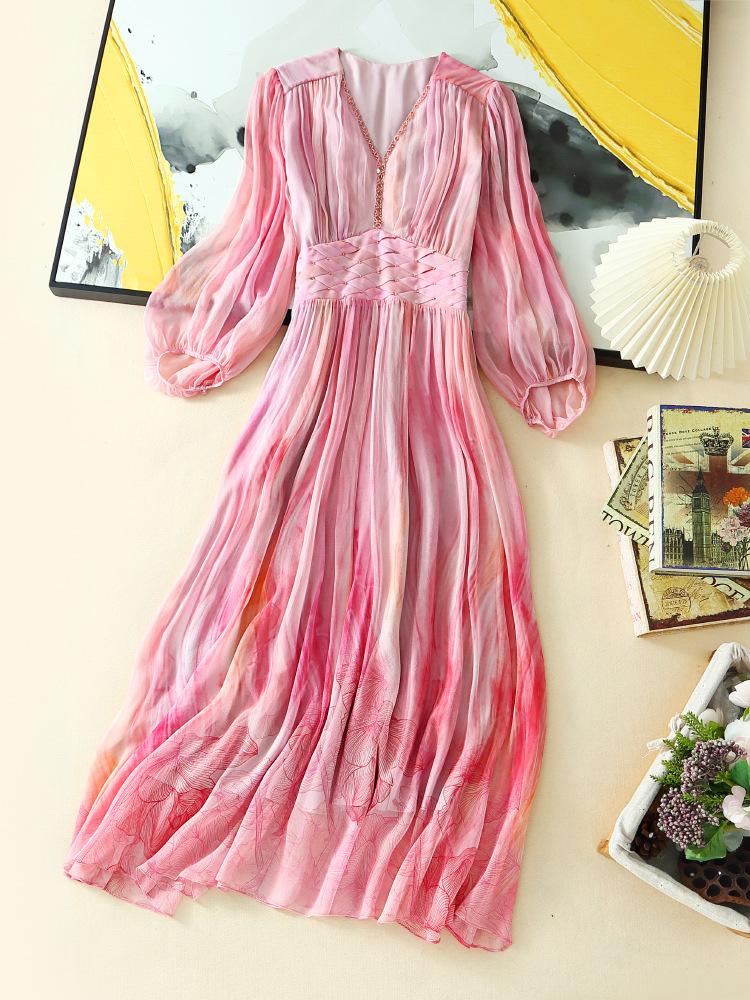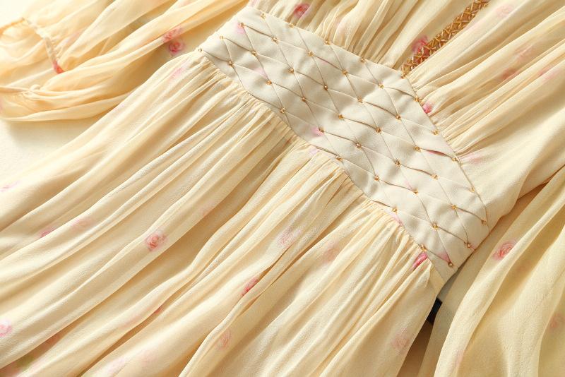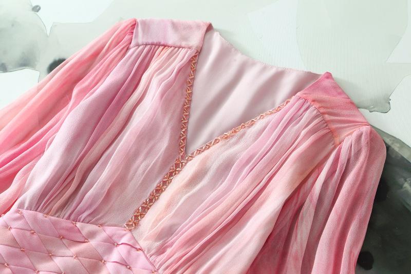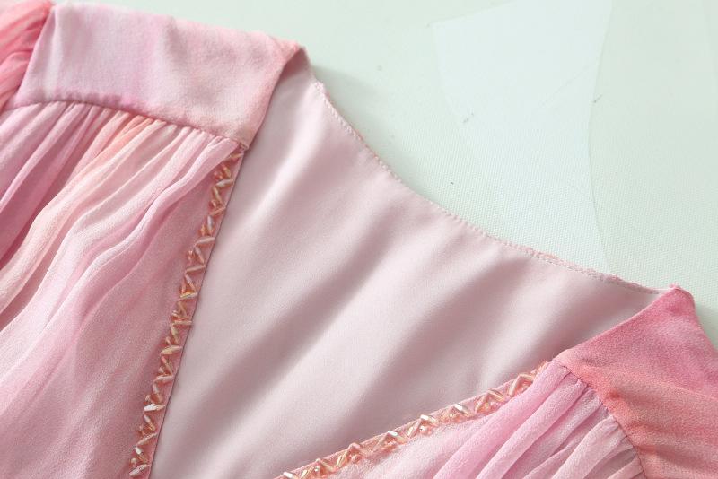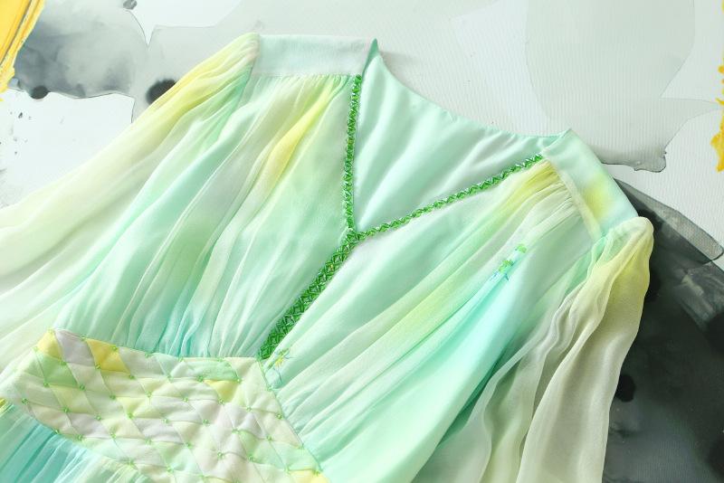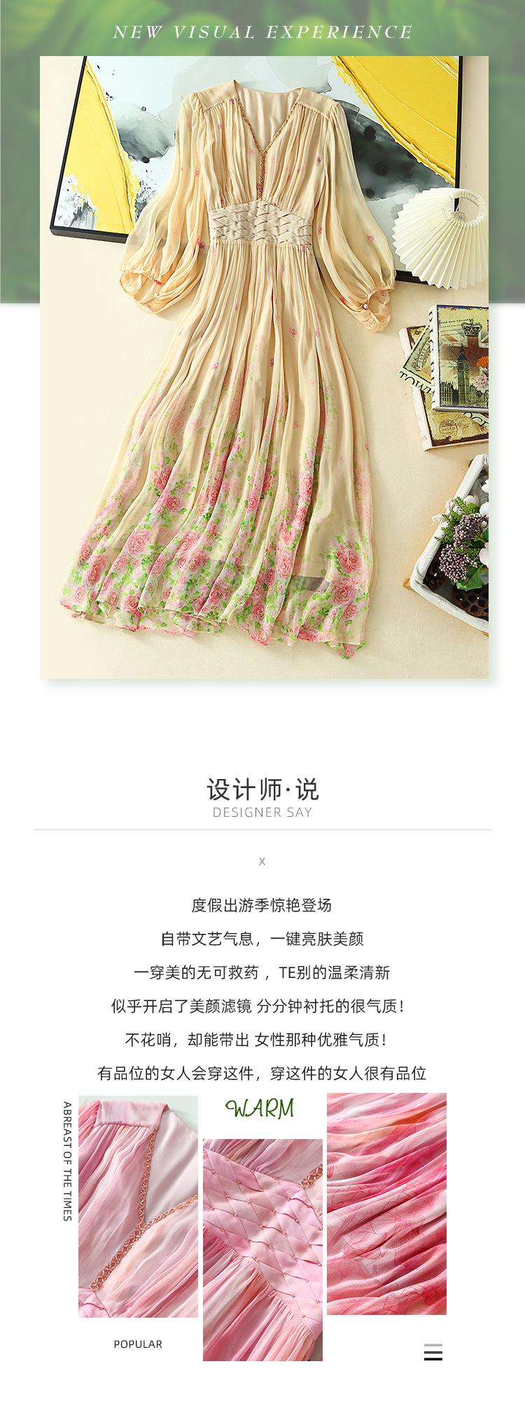 Seda de Amoreira Vestido de Seda Elegante Feminino Verão 2024 Novo Saia Evasê Slim de Cintura Alta Decote V Saia de Fada com Miçangas