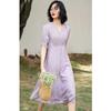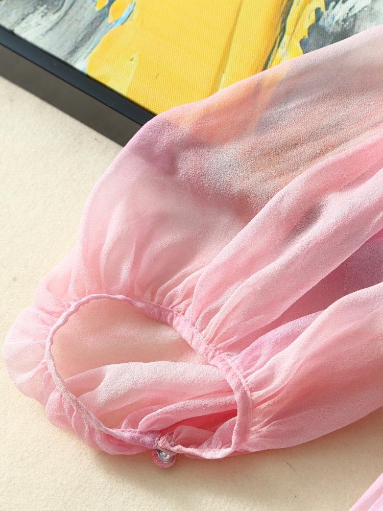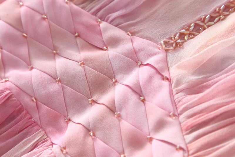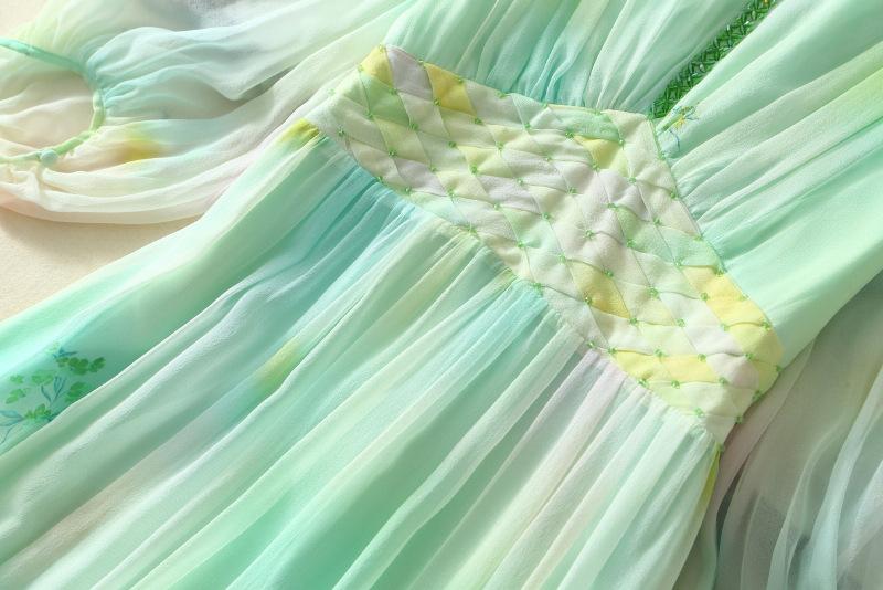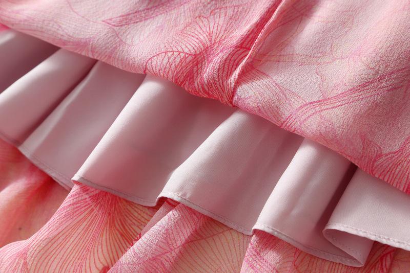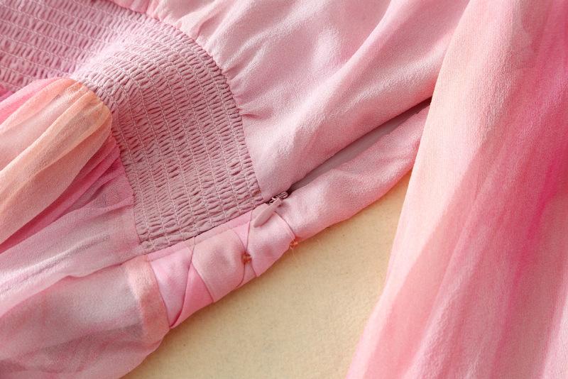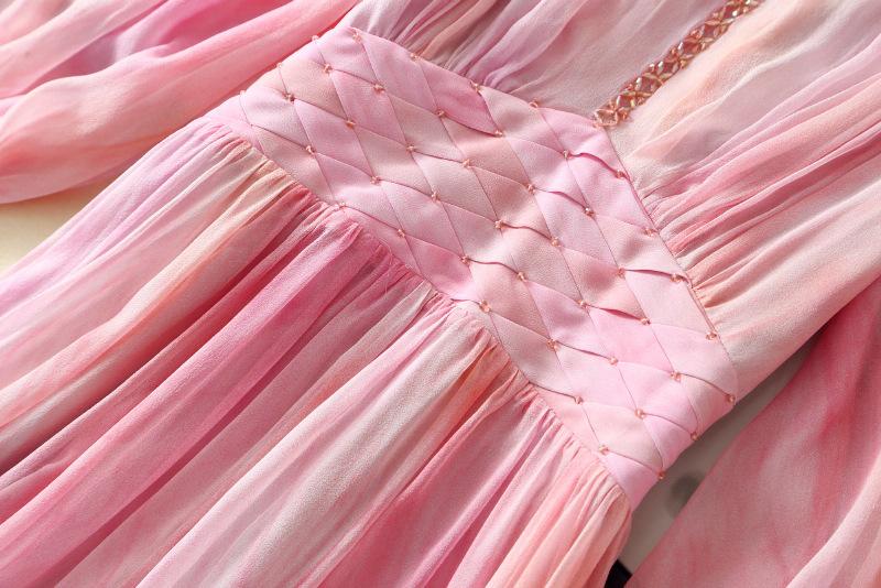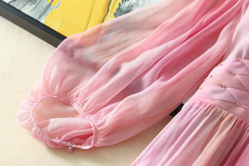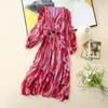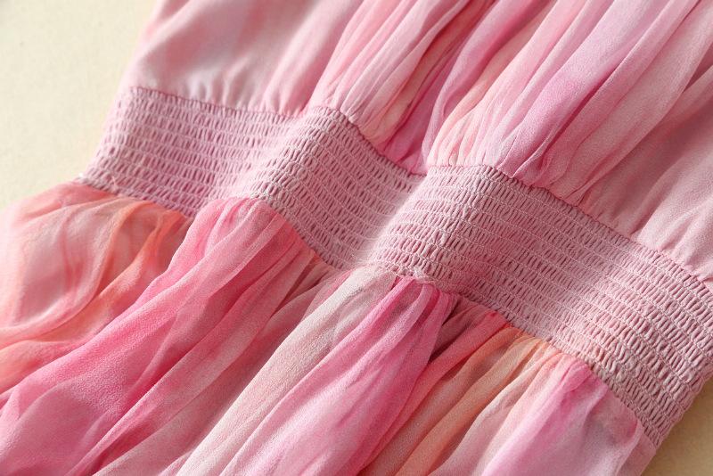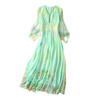 Seda de Amoreira Vestido de Seda Elegante Feminino Verão 2024 Novo Saia Evasê Slim de Cintura Alta Decote V Saia de Fada com Miçangas
