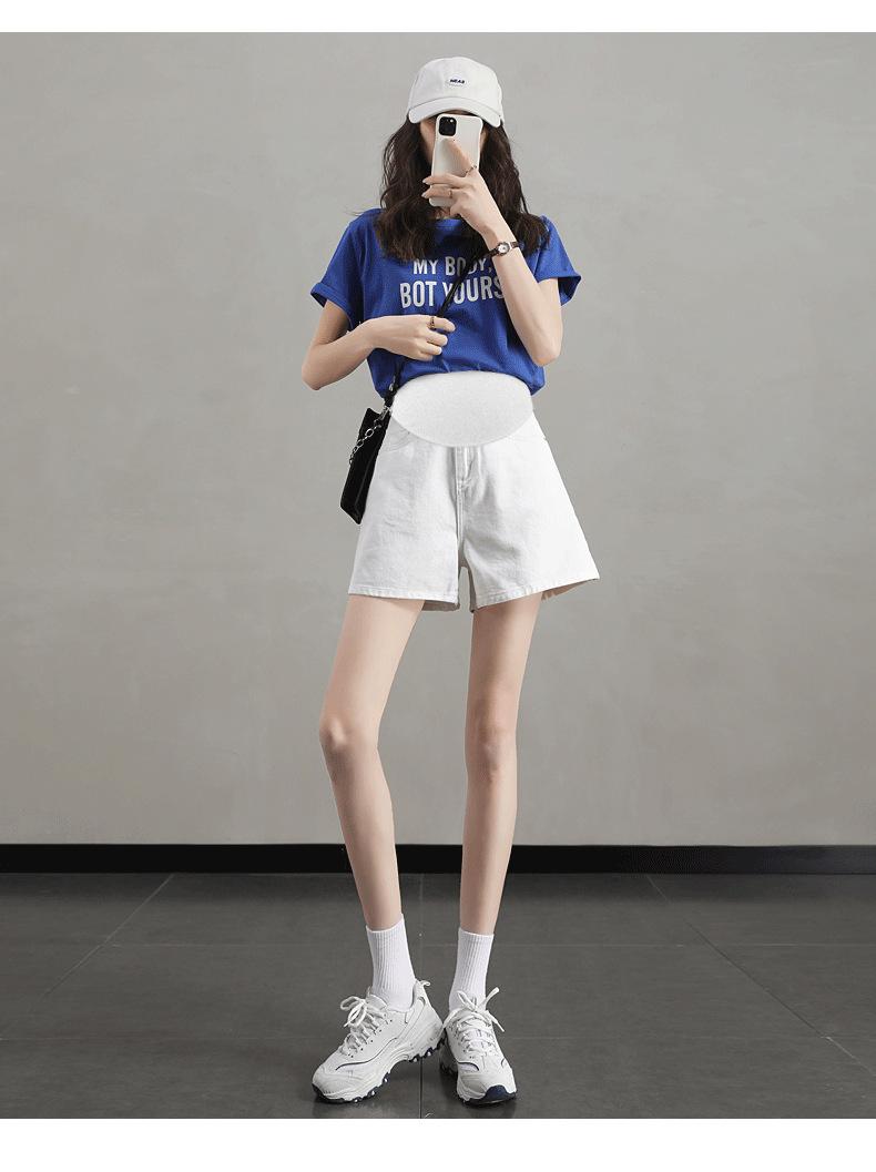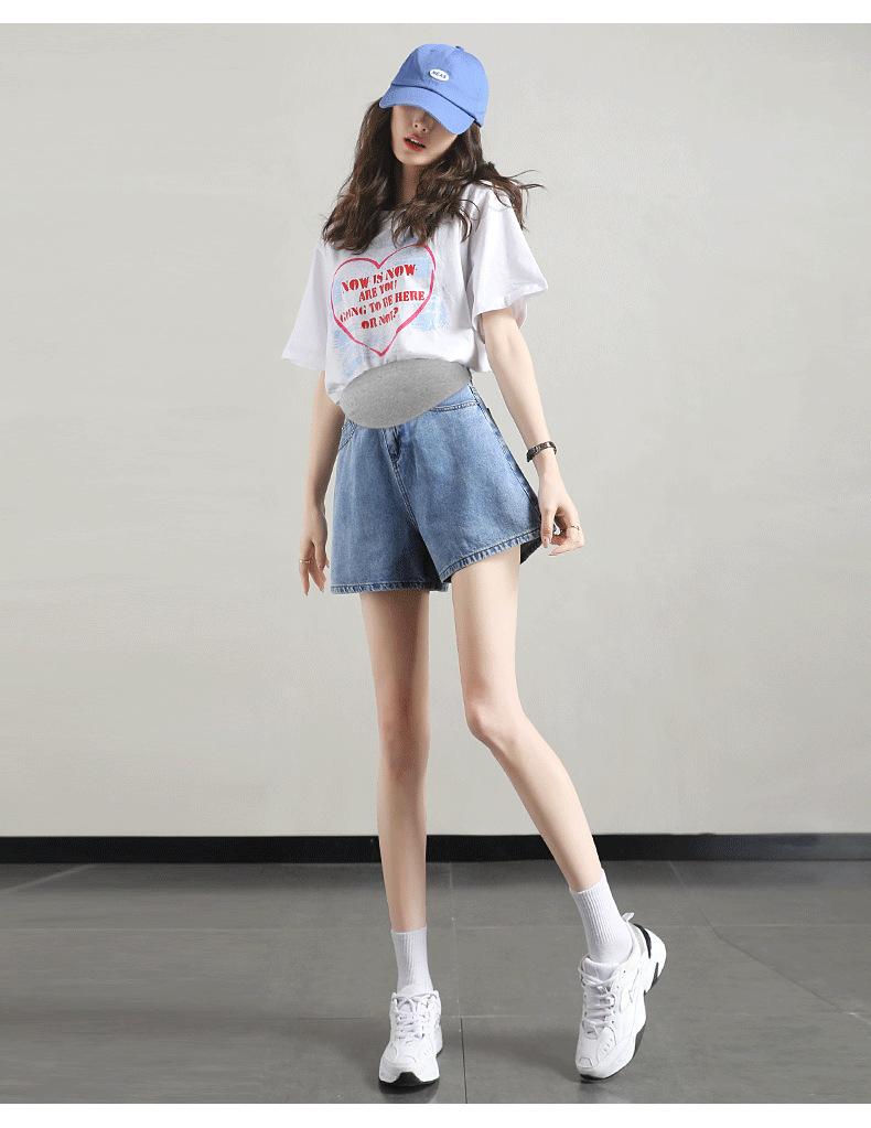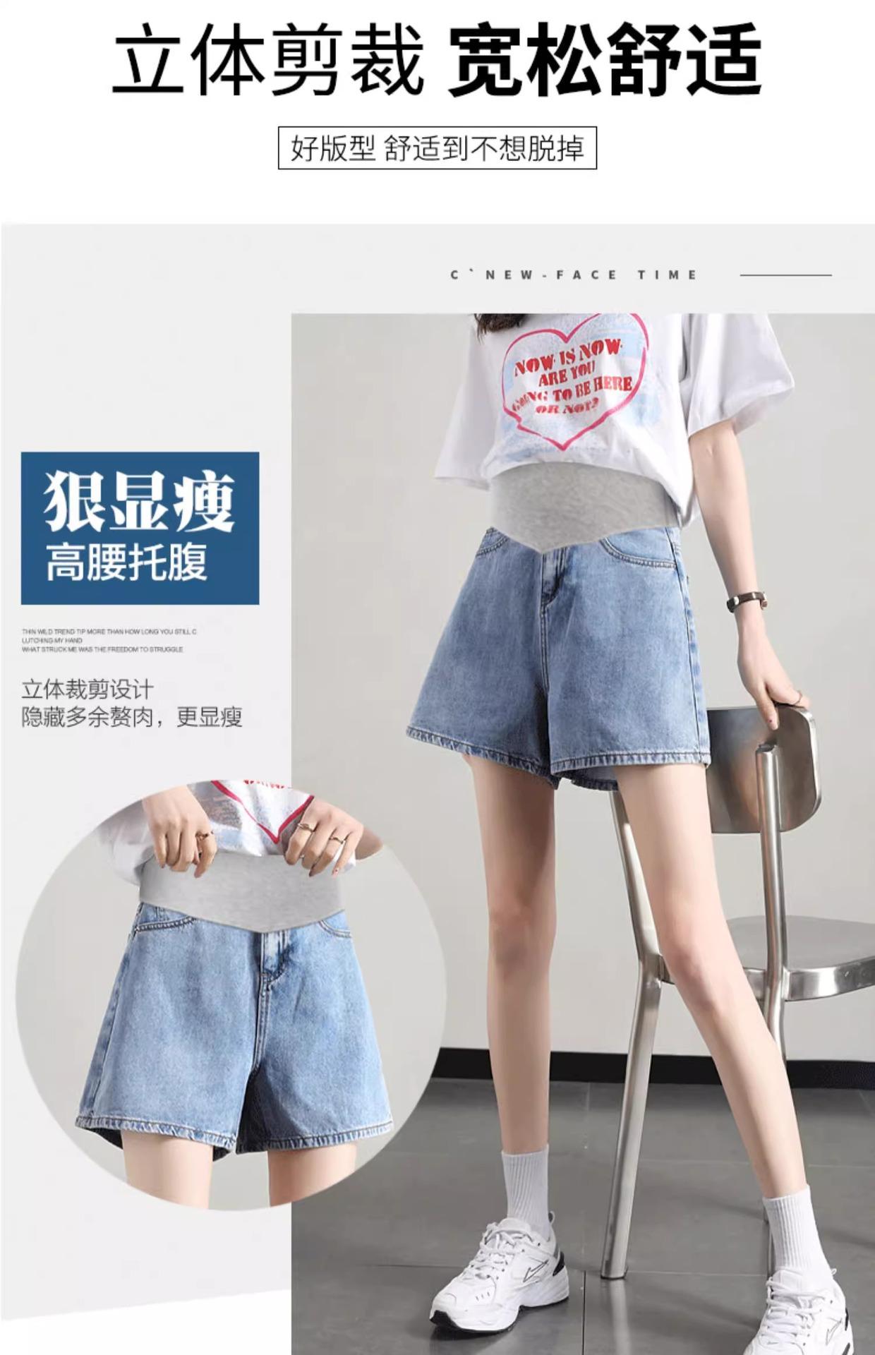 Shorts Jeans de Maternidade Verão Nova Moda Fino Solto Reto Bottoming Calças Três Quartos Maternidade Suporte para Barriga Calças Retas