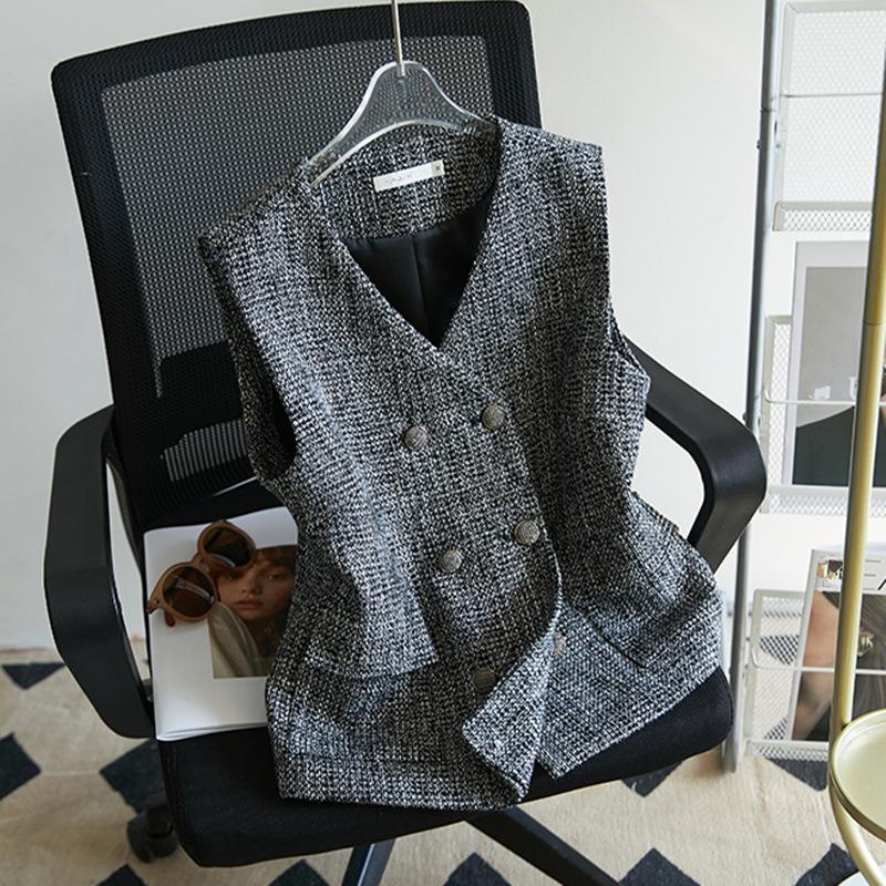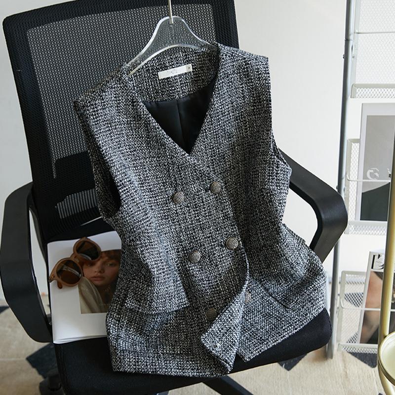 Terno curto estilo Chanel, colete, jaqueta feminina, primavera e outono, simples, elegante, retrô, trespassado, uso externo, terno para mulheres