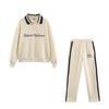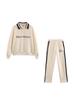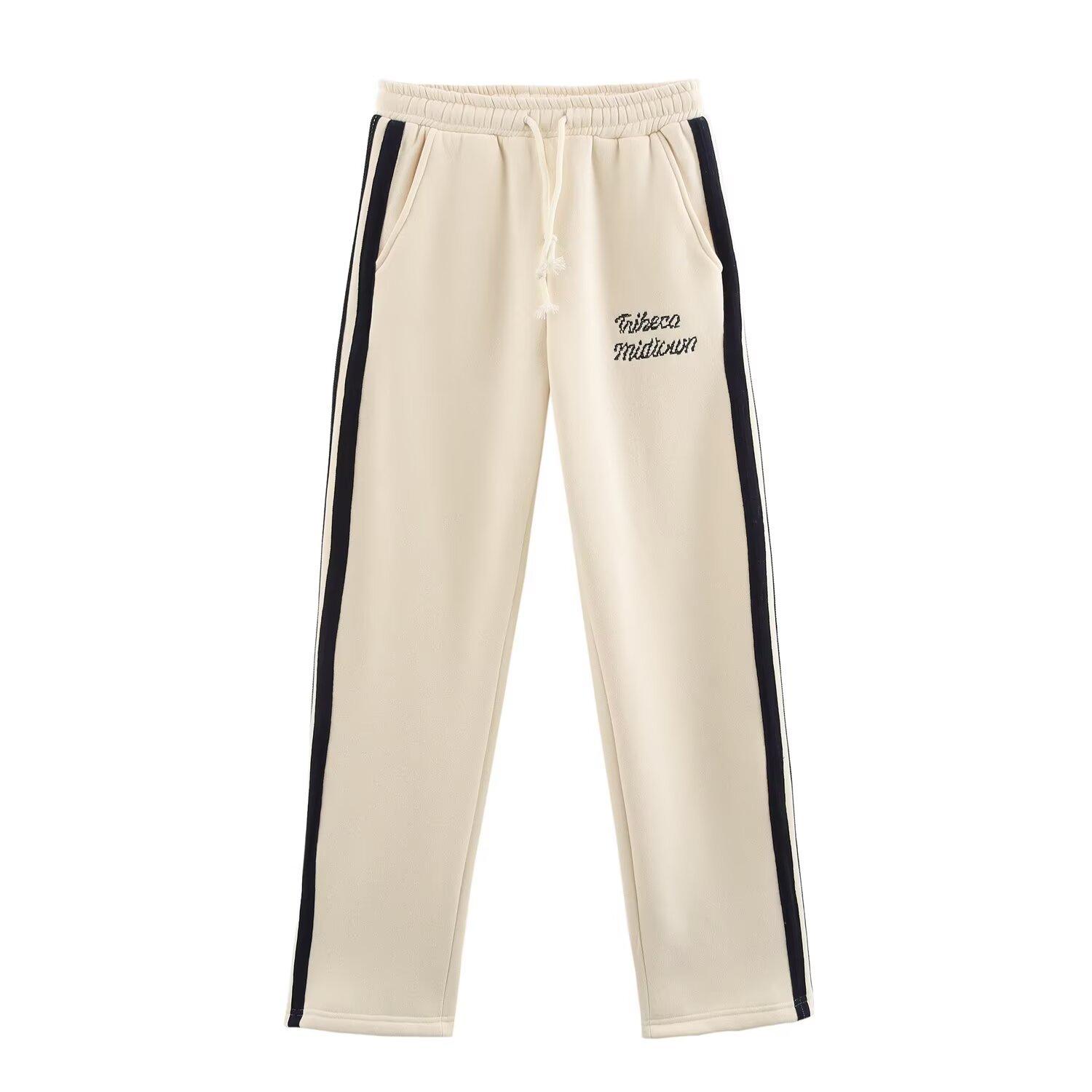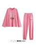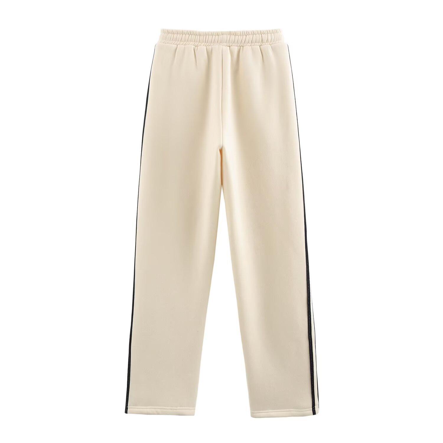 Calça casual feminina europeia e americana transfronteiriça, primavera de 2025, nova, diária, simples, de manga comprida, gola redonda, cintura alta, cotovelo