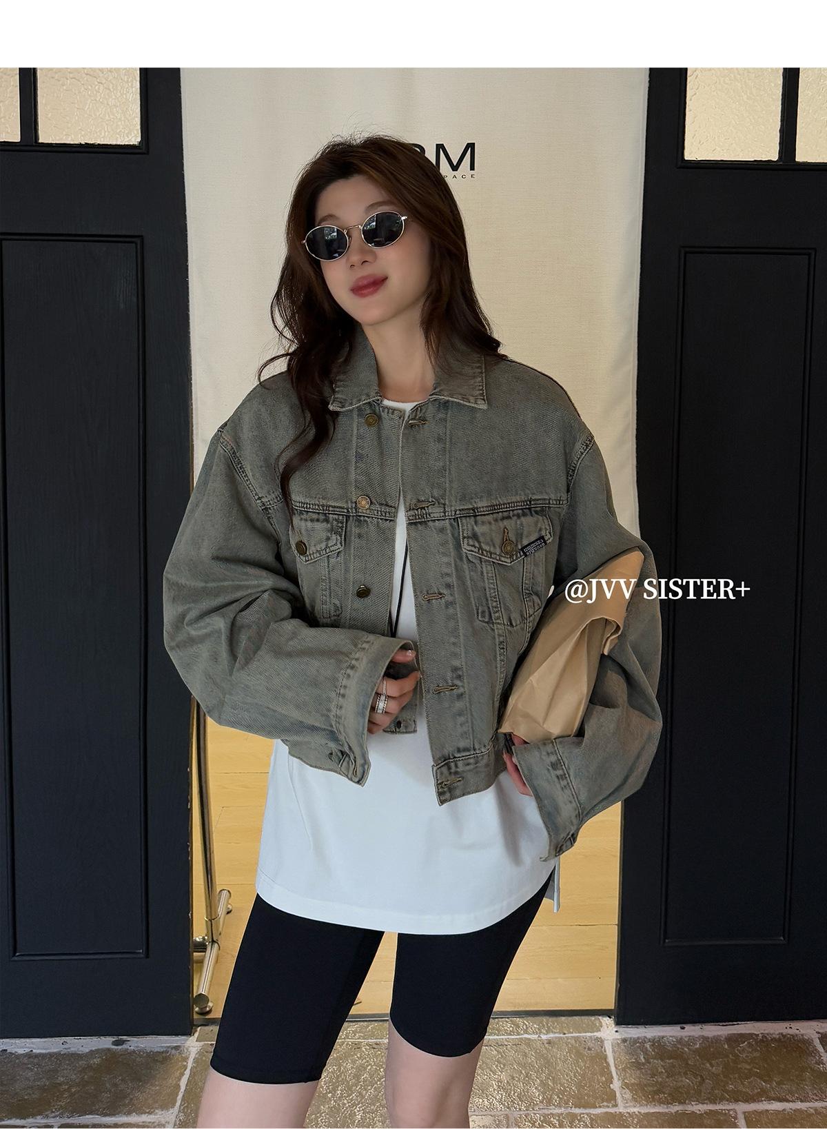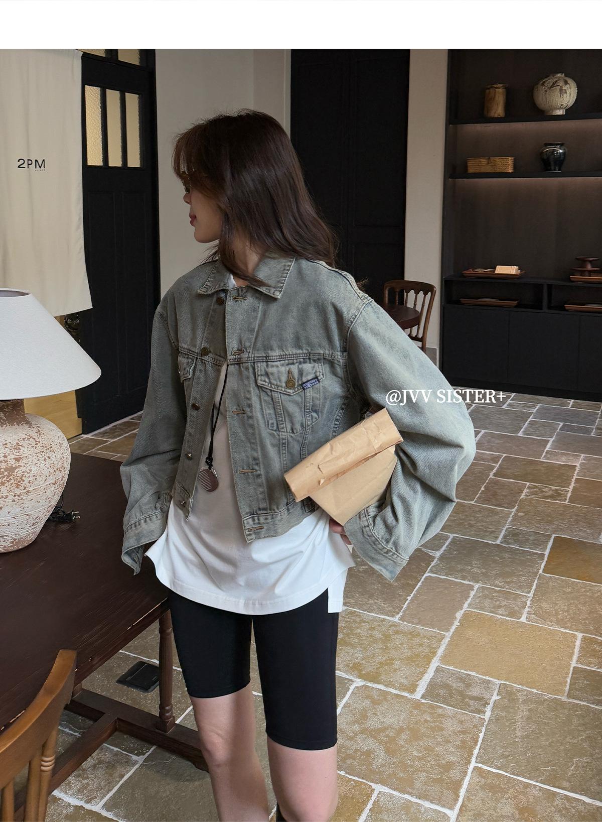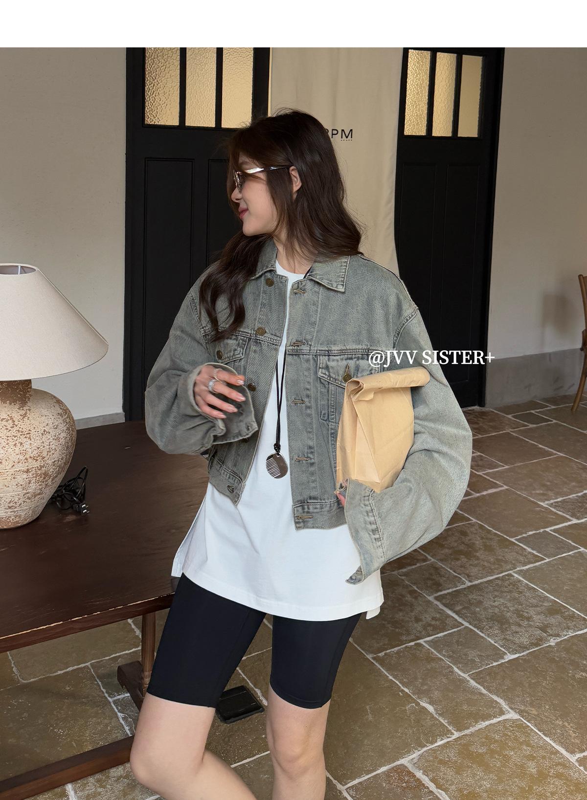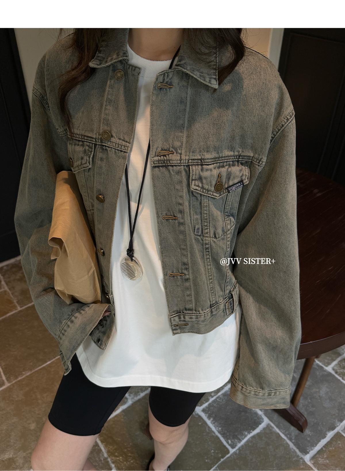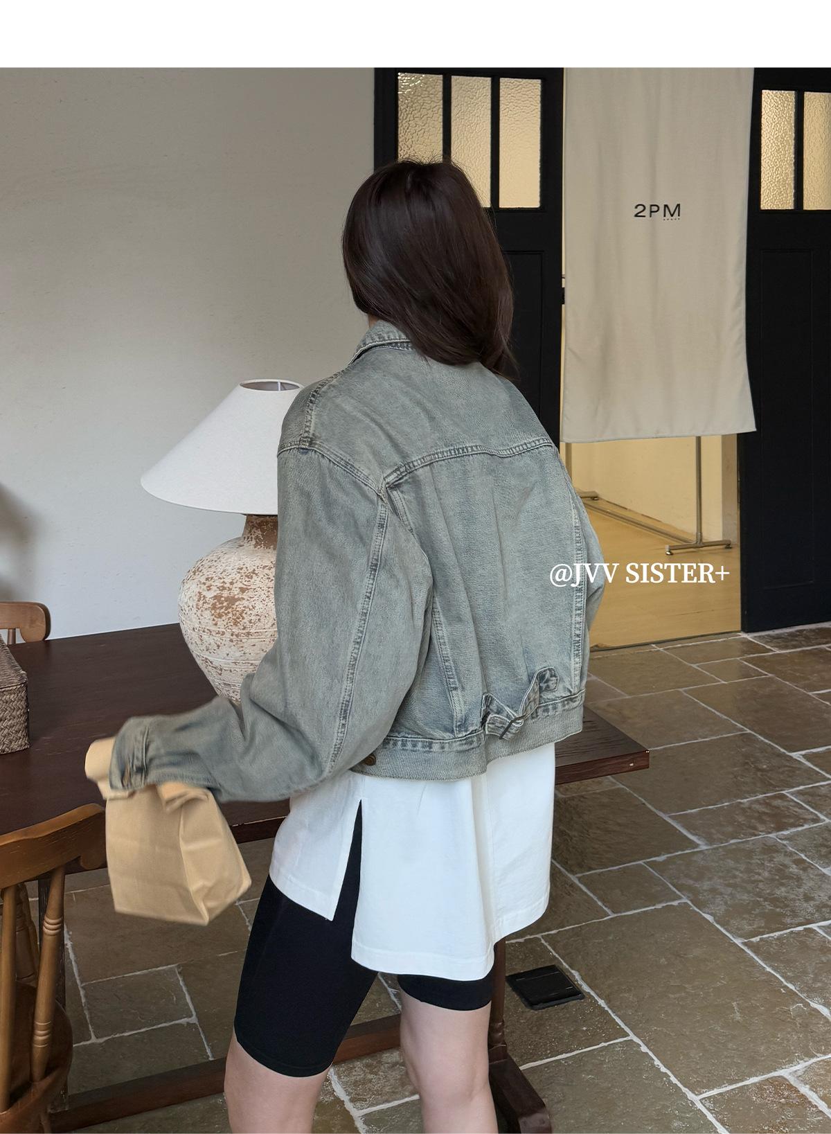 JVV SISTER Treze Linhas 2025 Primavera Novo Retro Velho Lavado Denim Casaco Curto Feminino 51313