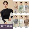 Camisa feminina quente, cor sólida, com pelo, gola alta, camisa feminina de manga comprida, outono e inverno, camiseta justa