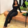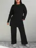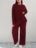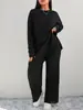 Novo terno de malha de duas peças, moda casual, slim, gola redonda, manga comprida, cor sólida, comércio exterior europeu e americano