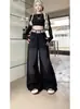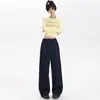 Calça jeans feminina vintage casual, preta, cinza, cintura alta, perna larga, outono e inverno, reta, solta, cor pêra, emagrecedora