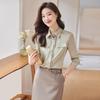 Camisa de Cetim Branca Feminina Manga Longa 2025 Início da Primavera Nova Solta Profissional Top Luxo Acessível Chique Camisa Pequena