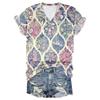 Nova Amazon cross-border senhoras V-neck T-shirt manga curta 3D impressão digital Europeu e Americano tamanho grande