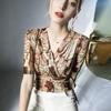 Camiseta de Chiffon Falsa de Duas Peças de Manga Curta Camiseta Feminina de Verão Camisa Elegante Francesa Top Ombro a Ombro Camisa com Gola Polo