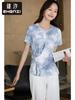 Camiseta feminina com estampa de estrela retrô e manga curta, nova camiseta plissada com cintura justa da Zhen Xi SQ709