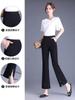 Calças micro-largas femininas primavera estilo coreano 2025 novas calças casuais pretas de corte slim com nove fendas elásticas tamanho grande para crianças