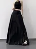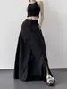 Saia Americana Workwear para Mulheres Verão Cintura Alta Retrô Fenda Lateral Plissada A-Line Cobre Quadril Comprimento Médio Estilo Esportivo Reta