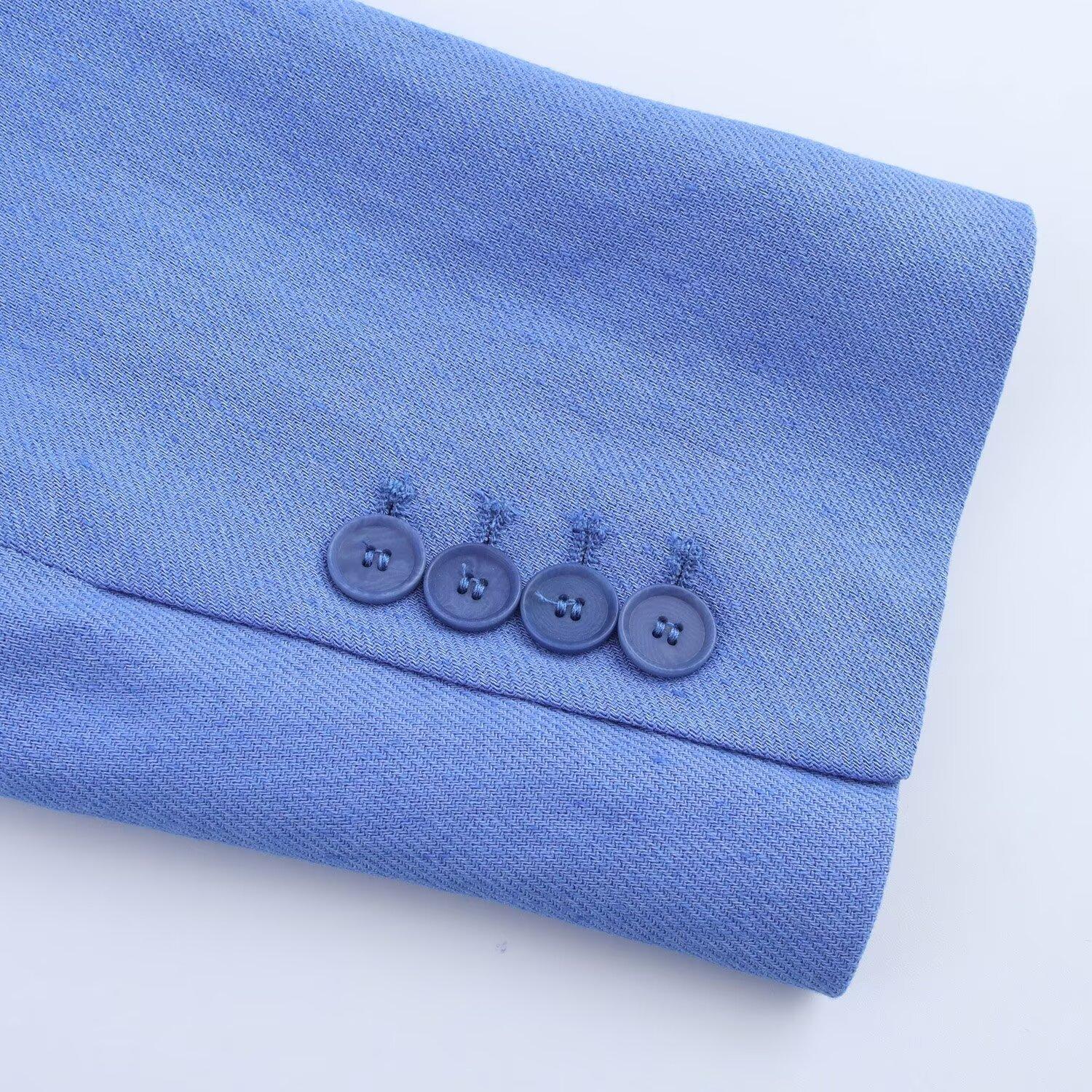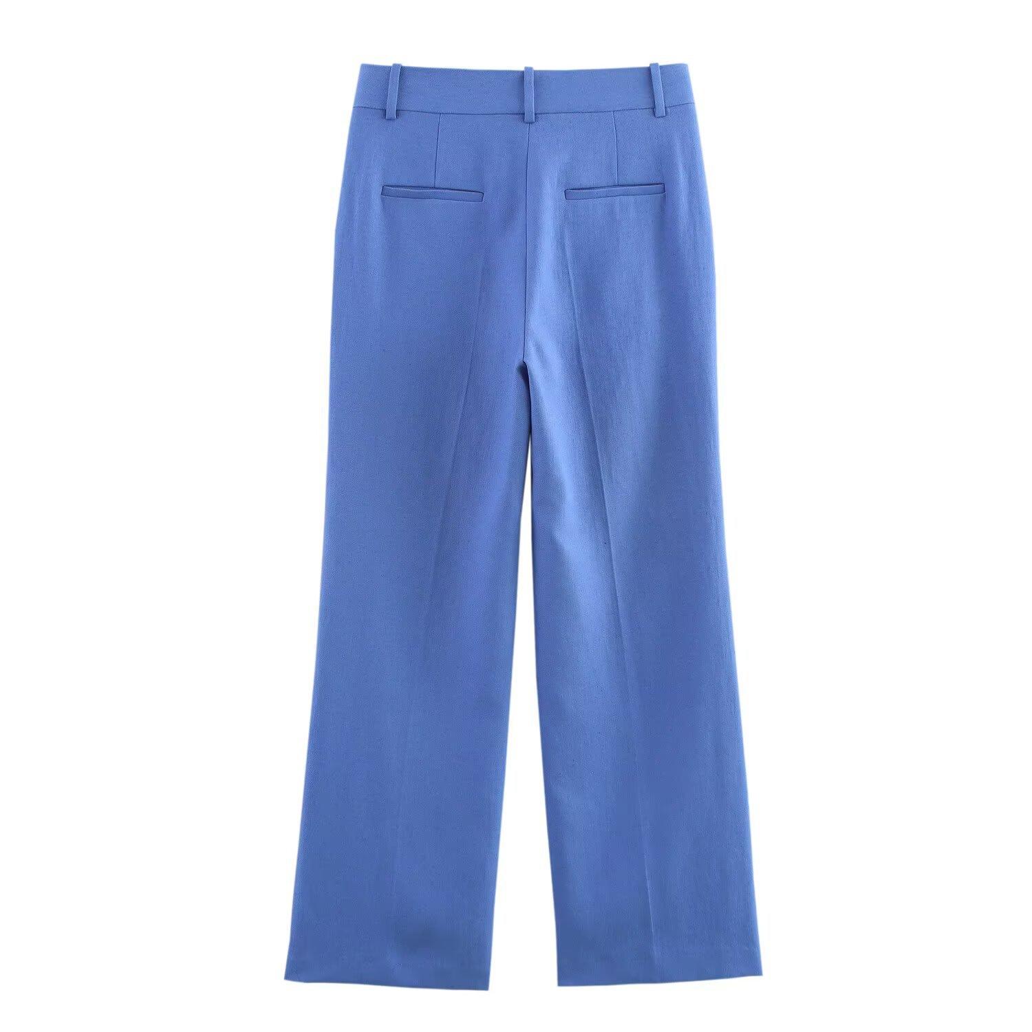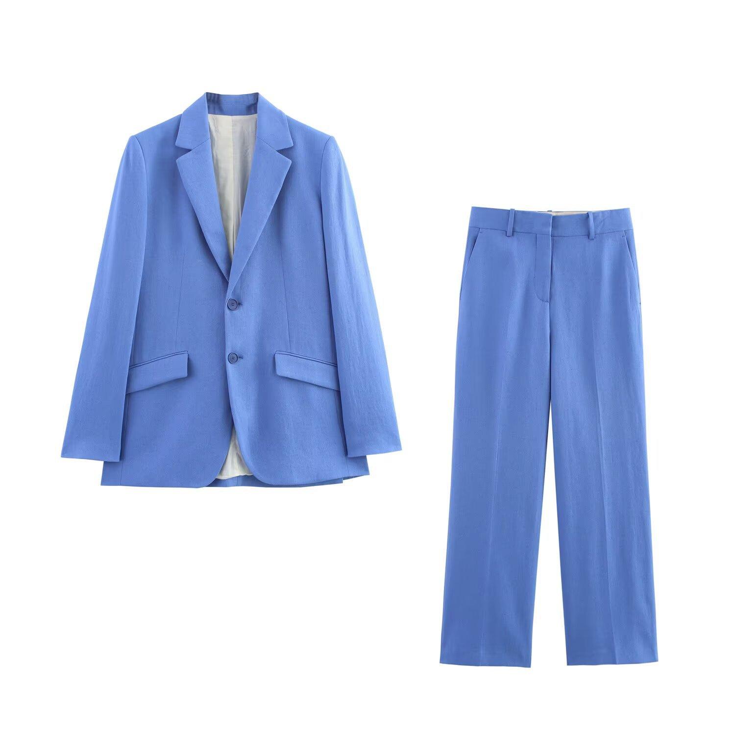 Terno feminino de linho misto, com pernas retas, para primavera de 2025, novo, europeu e americano, w025 11301