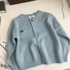 Suéter pequeno feminino primavera e outono 2025, gola redonda, jaqueta de malha solta, curta, cintura alta, imitação de lã, cardigan