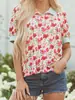 Camisa feminina com estampa de leopardo da moda, nova primavera e verão 2025, gola redonda, manga curta, estilo viajante